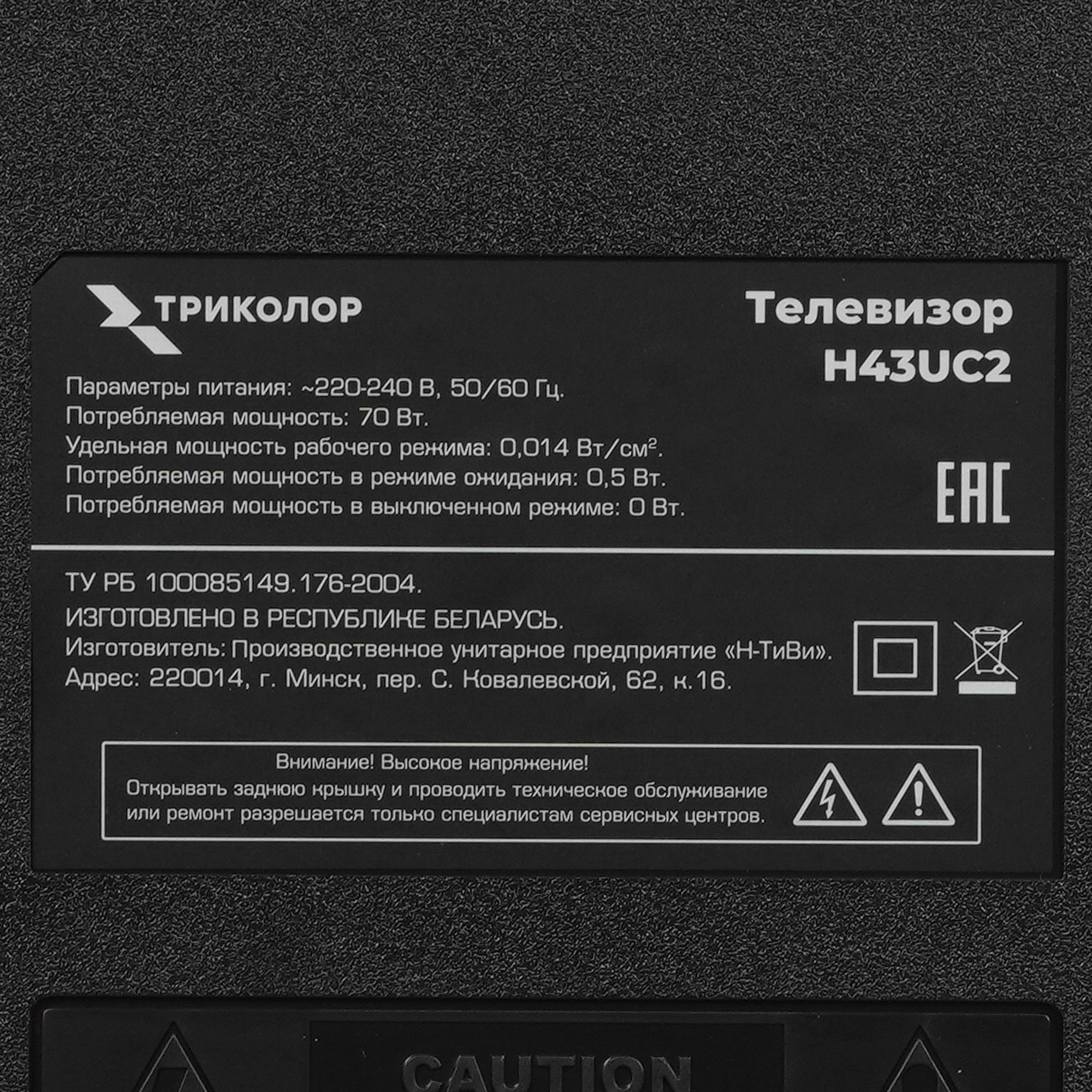 Телевизор Триколор 43" H43UC2 черный LED 4k UHD 60Hz Android 11 1.5Gb