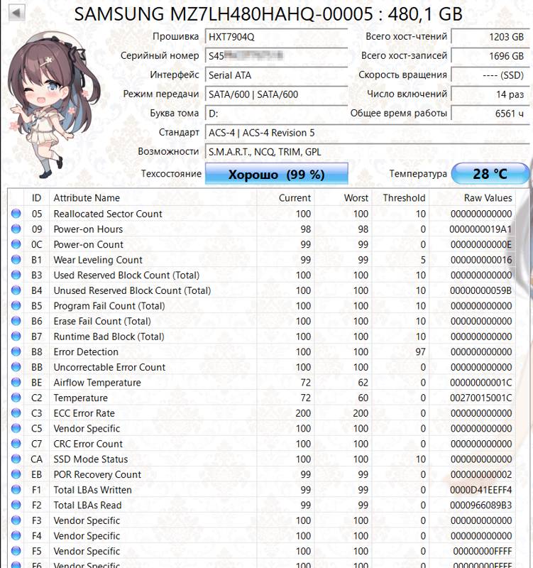 Samsung PM883 выполняет чтение и запись со скоростью 520-550 Мбайт/сек, сохраняя стабильность при любом объеме свободной памяти. SSD успешно обрабатывает большие массивы информации, быстро выполняет сложные вычисления и запускает мощные программы. Ресурс перезаписи 683 ТБ позволяет ежедневно обновлять 130% от емкости без торможения и сбоев в работе накопителя.