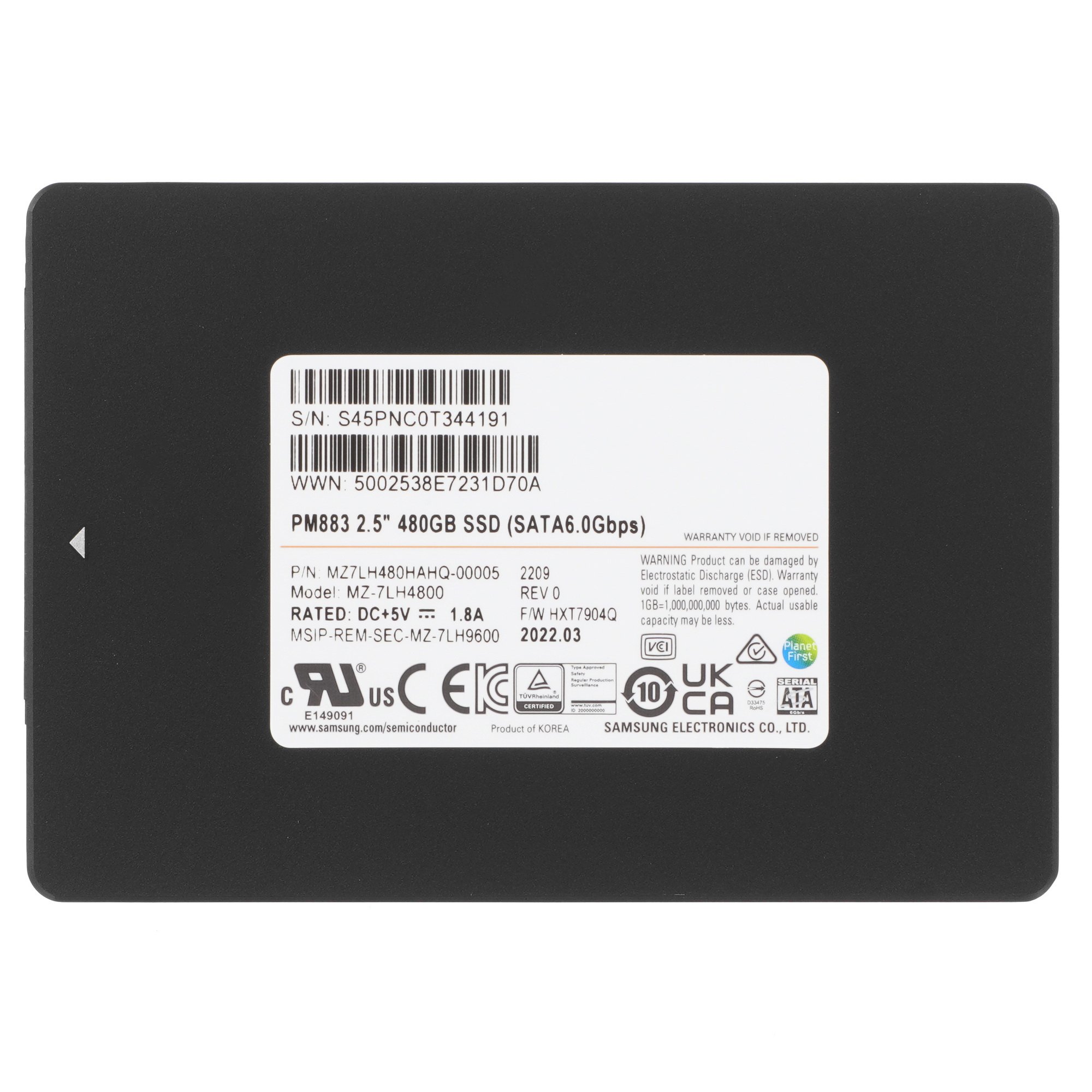 Серверный SSD накопитель Samsung PM883 [MZ7LH480HAHQ-00005] подходит для небольших офисов с ограниченным числом пользователей. Плотная структура ячеек 3D NAND обеспечивает объем памяти 480 ГБ при компактном форм-факторе 2.5”. Подключение через SATA III облегчает установку и настройку накопителя.