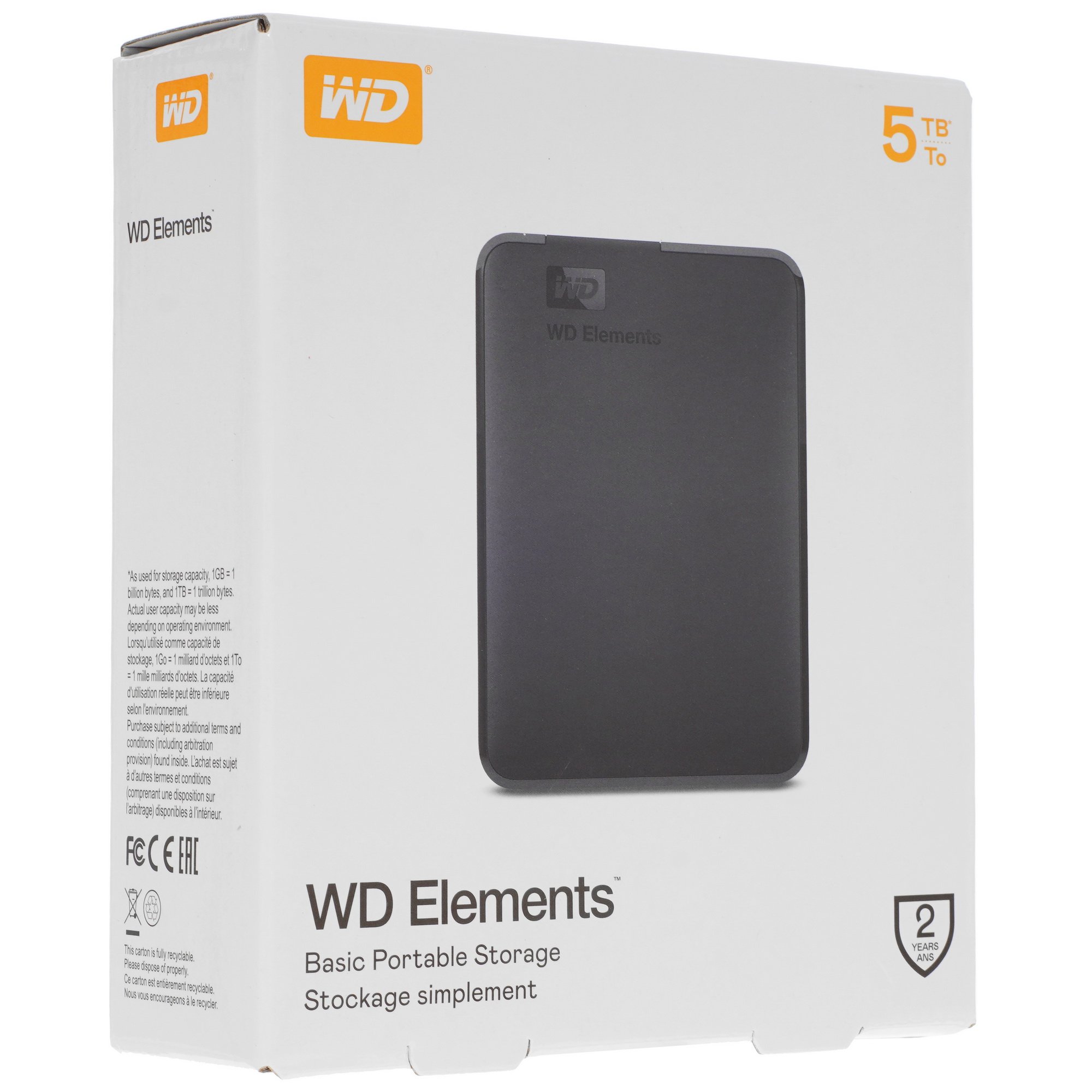 Внешний HDD 2.5" Western Digital Elements Portable, 5TB, USB 3.2 Gen 1 Type-A, 5400 rpm, черный