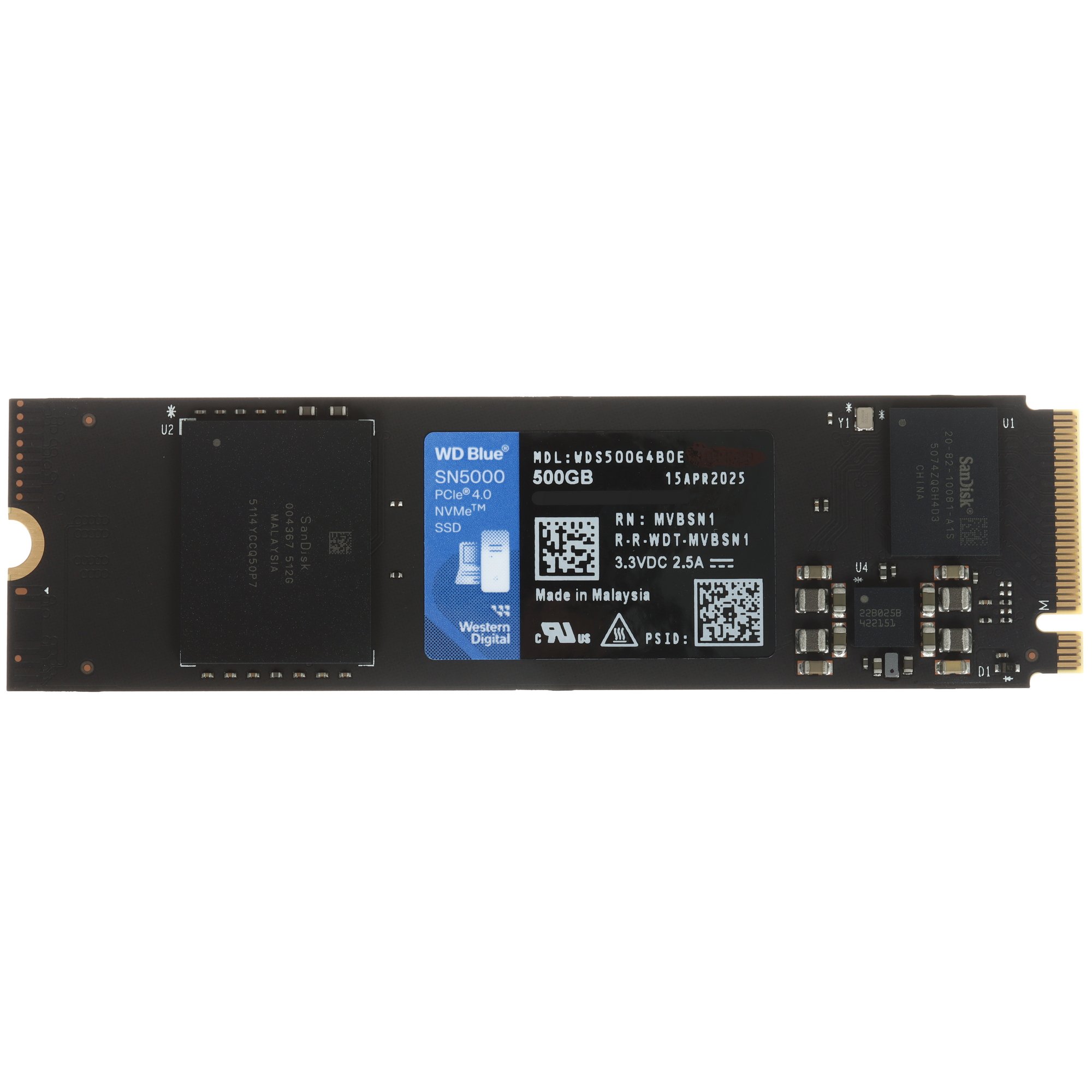 Накопитель SSD WD Blue SN5000, 500Gb, PCIe 4.0 x4, M.2 2280, NVMe, R/W 5000/4000