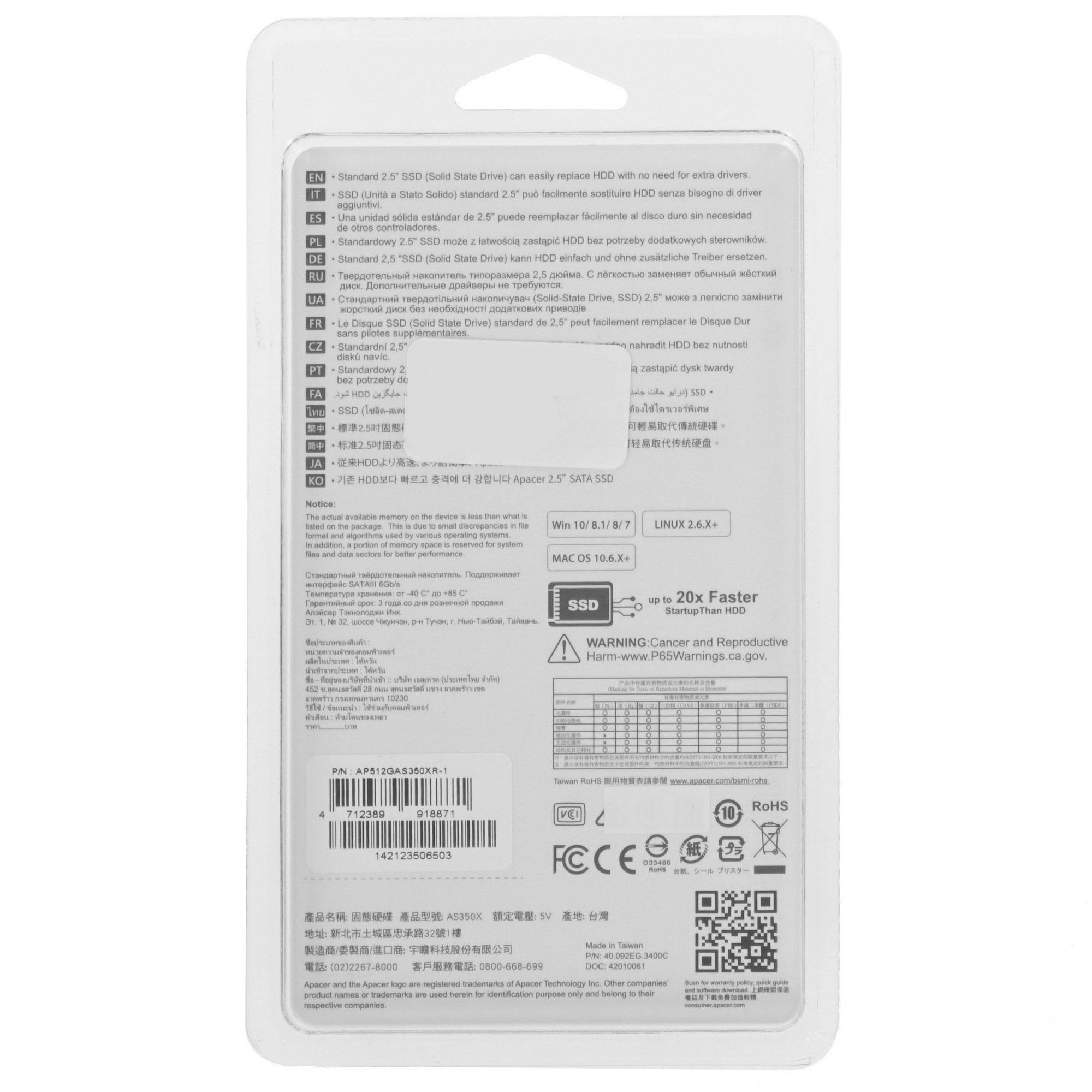 SATA накопитель Apacer AS350X обладает свойствами высокоскоростного и надежного устройства SSD, установка которого поможет существенно ускорить запуск различных программ и файлов. Благодаря использованию интерфейса SATA данный накопитель подходит для совместного функционирования с настольными компьютерами и ноутбуками. Данная модель Apacer AS350X предлагает для размещения довольно большого количества программ и пользовательского контента 512 ГБ памяти. Фирменная утилита помогает контролировать и отслеживать состояние работы накопителя.