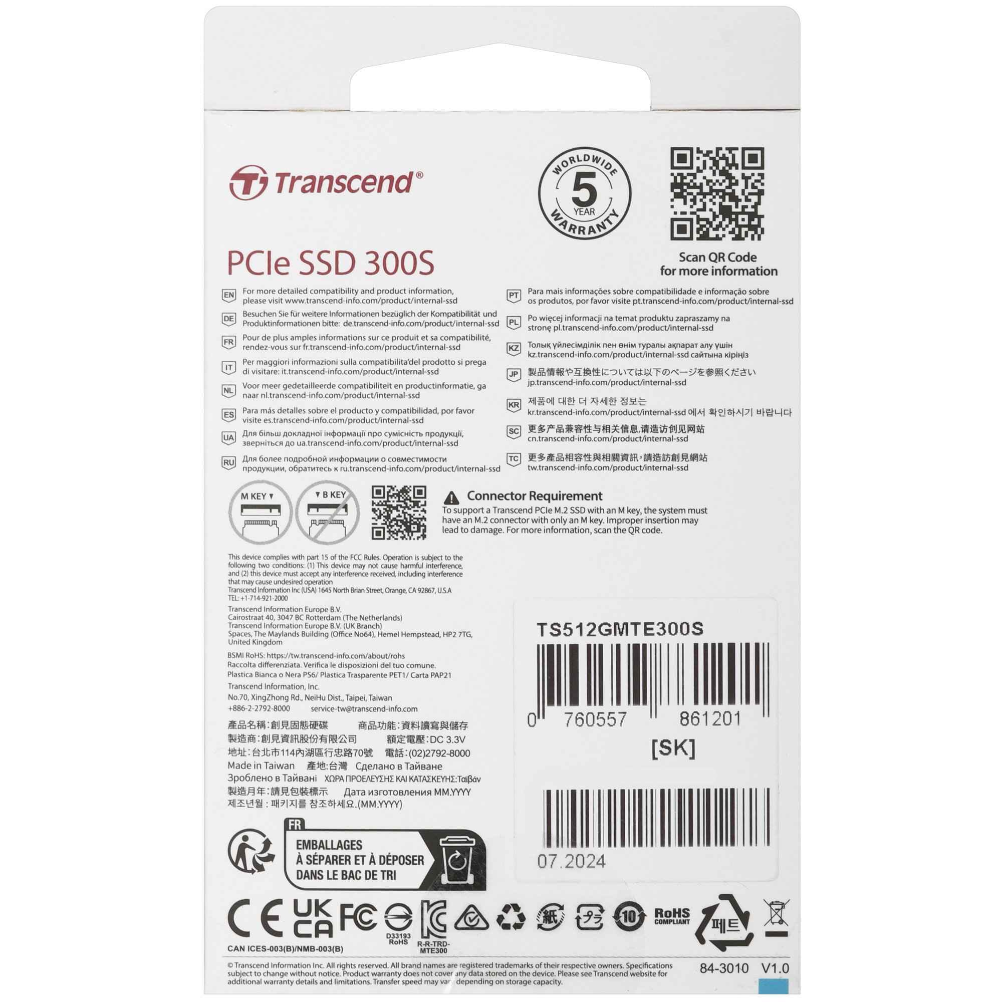 Накопитель SSD Transcend 300S TS512GMTE300S, 512Gb, PCIe 3.0 x4, M.2 2230, NVMe, R/W 2000/1100