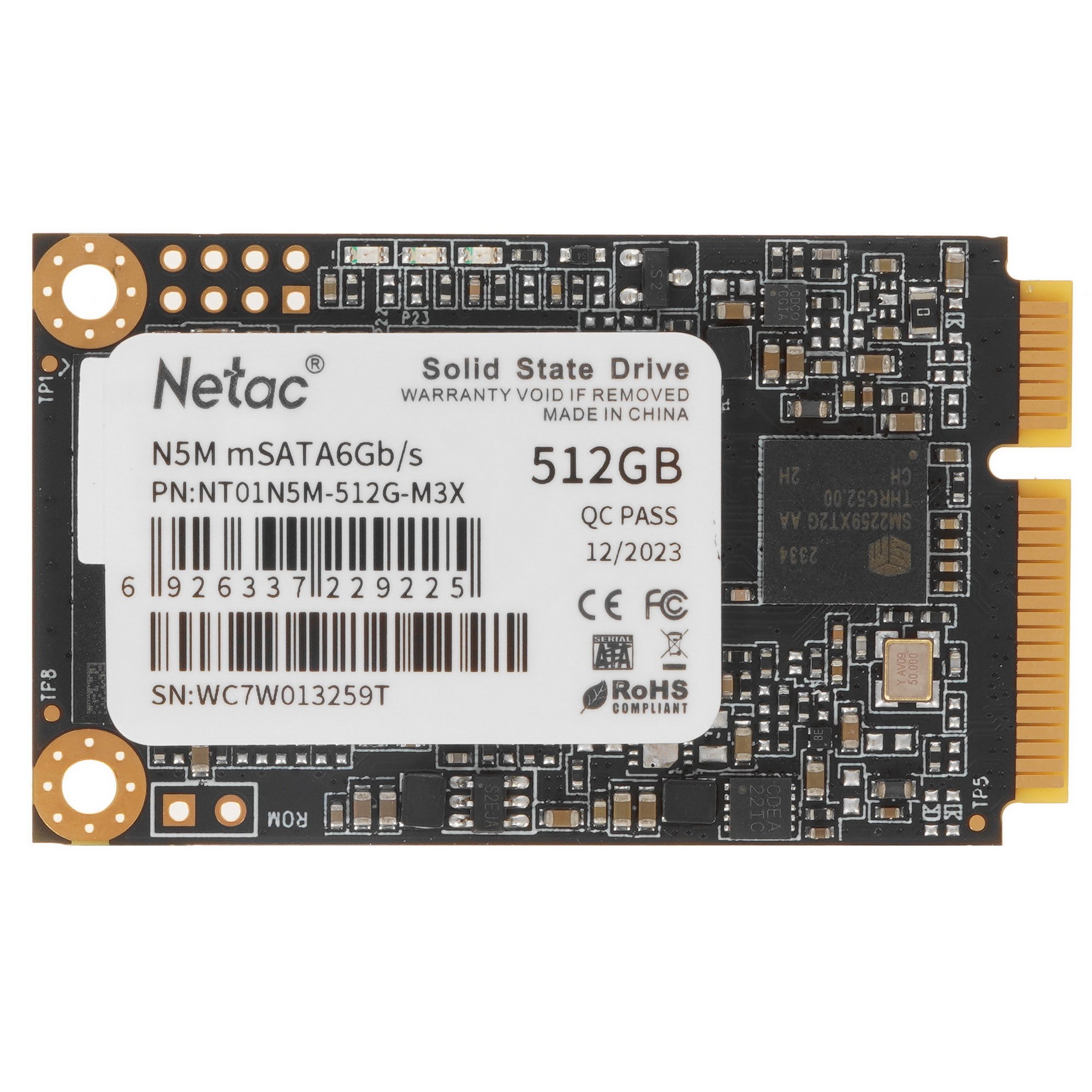 Накопитель SSD Netac N5M, 512Gb, mSATA, R/W 540/490