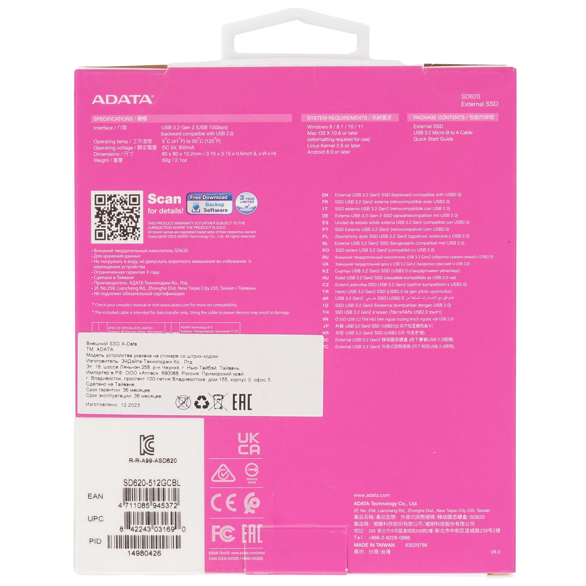 Внешний SSD 512Gb A-DATA SD620, External, USB 3.2, R/W -550/500 MB/s синий