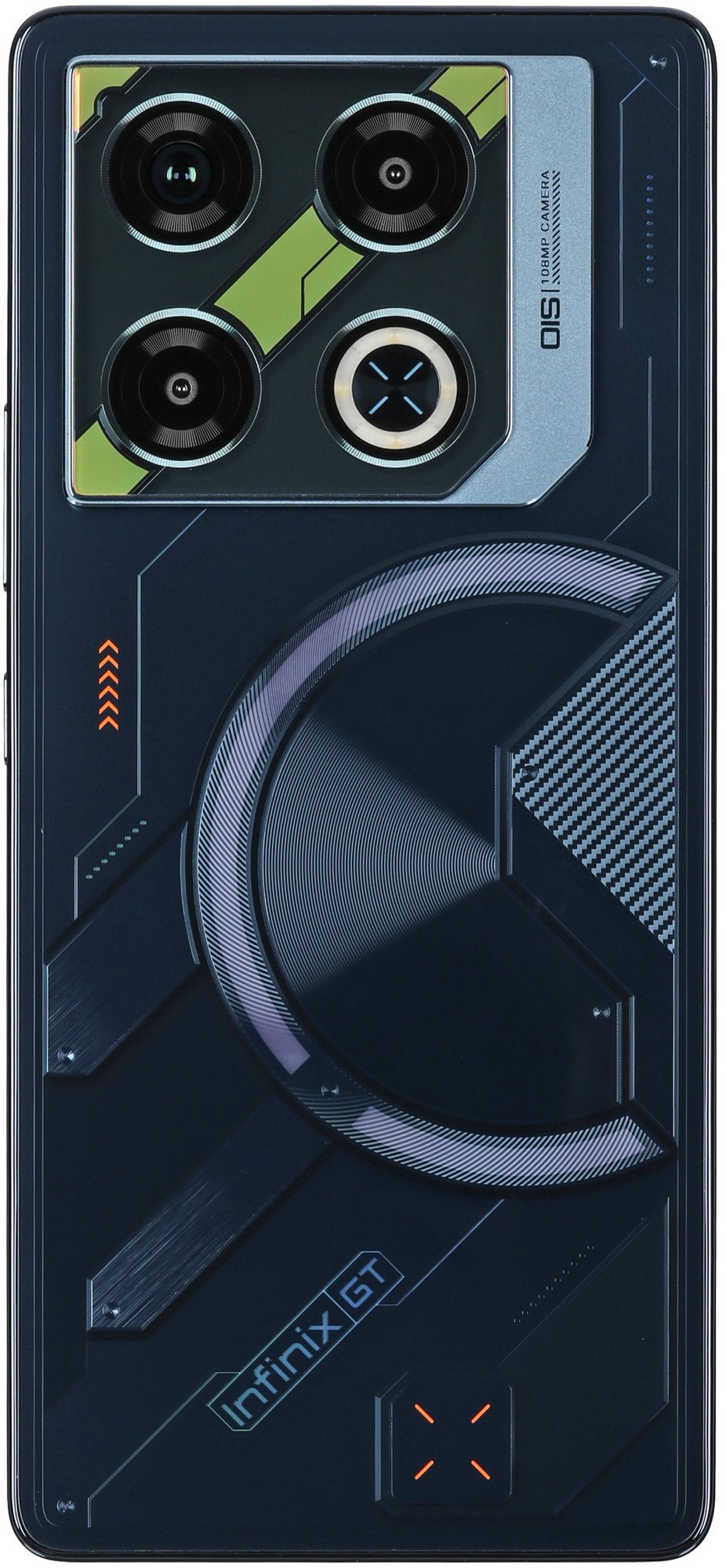 На безрамочном экране AMOLED диагональю 6.78" с любого положения отображается четкая красочная картинка. В смартфоне Infinix GT 20 Pro установлены тройная камера 108+2+2 Мп на тыловой панели и фронтальная камера с разрешением 32 Мп. Одного заряда аккумулятора емкостью 5000 мА*ч хватает до 32 часов автономной работы устройства при разговорах. Поддерживается функция ускоренной зарядки Power Delivery 3.0.