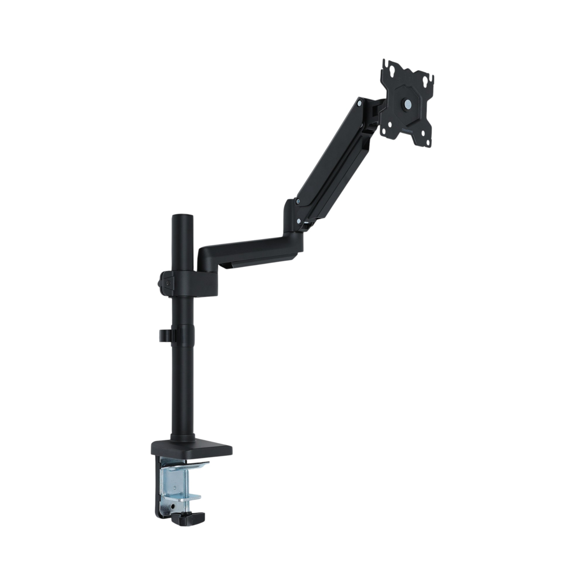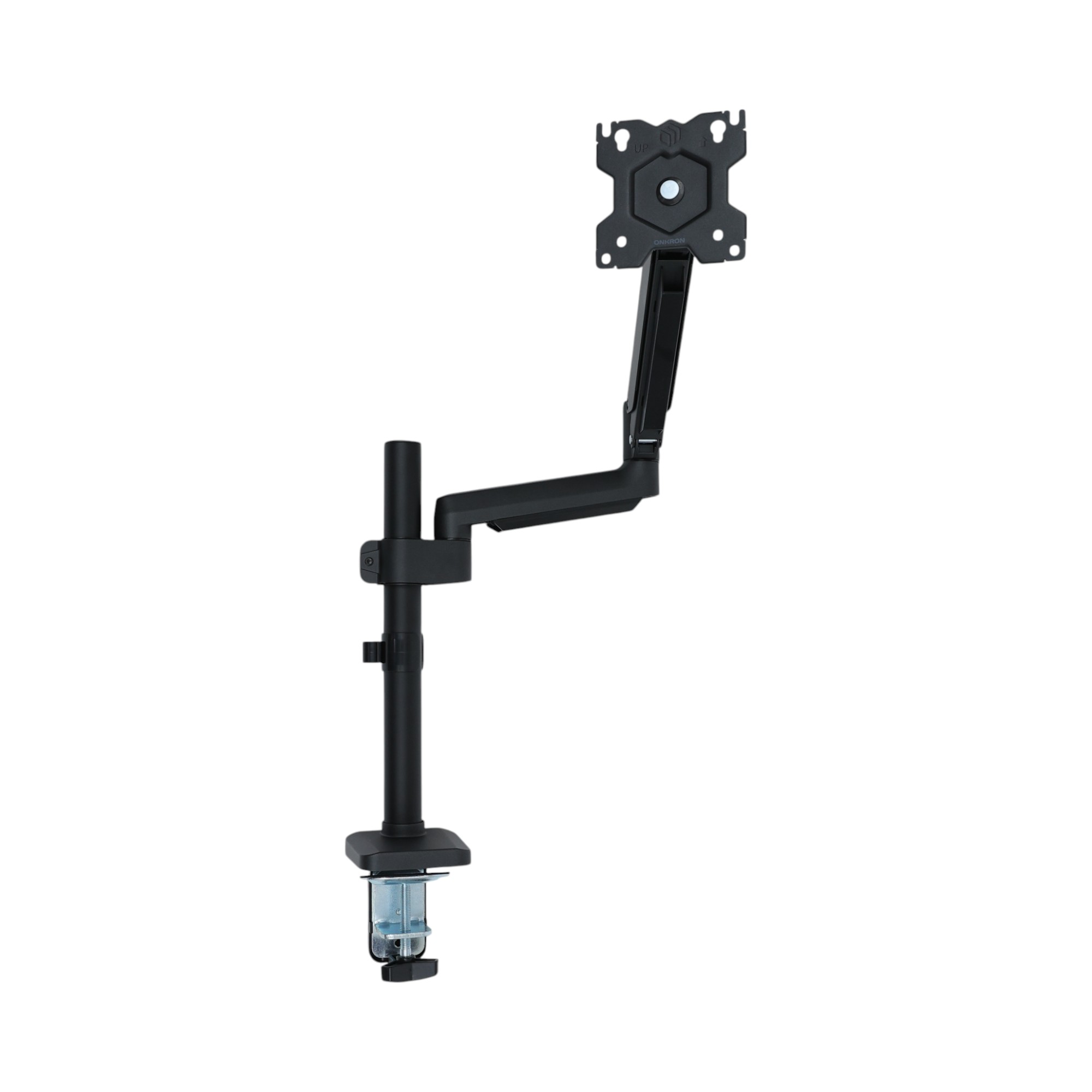Черное наклонно-поворотное крепление для мониторов ONKRON G75 крепится к столешнице. Аксессуар выдерживает нагрузку до 12 кг. Крепление подходит для мониторов с размером диагонали экрана от 13 до 34 дюймов. Совместимые размеры VESA – 100x100 и 75x75. Углы наклона вверх и вниз ограничены 90° и 45° соответственно, а угол поворота составляет 180°.