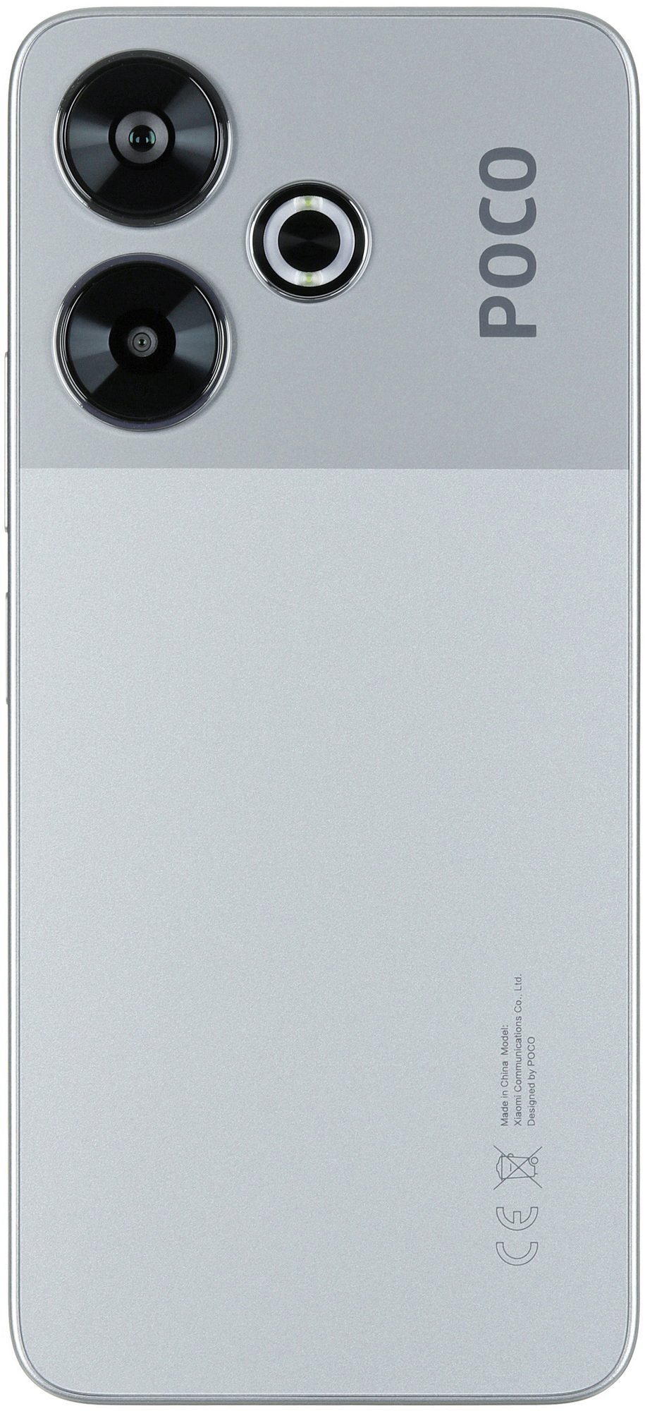 Смартфон POCO M6 в корпусе из серебристого пластика и стекла оборудован 6.79-дюймовым безрамочным IPS-дисплеем, который отличается широкими углами обзора и высокой цветонасыщенностью. Частота обновления 90 Гц гарантирует своевременную смену кадров при отображении динамичных сцен. Отсутствие задержек при запуске ресурсоемких приложений обеспечивает оперативная память объемом 6 ГБ.