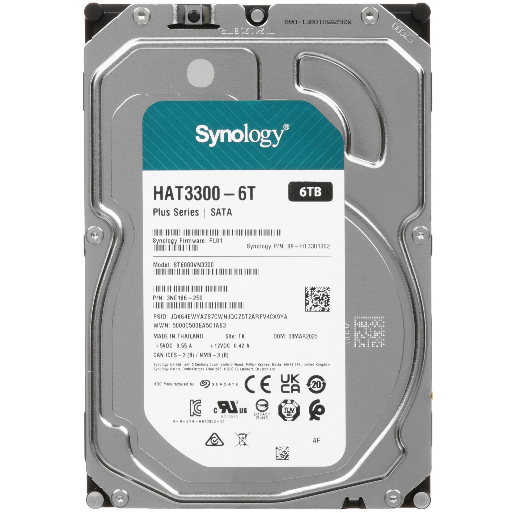 Жесткий диск Synology HAT3300-6T HDD SATA 3,5", 6Tb, 5400 rpm, 256Mb