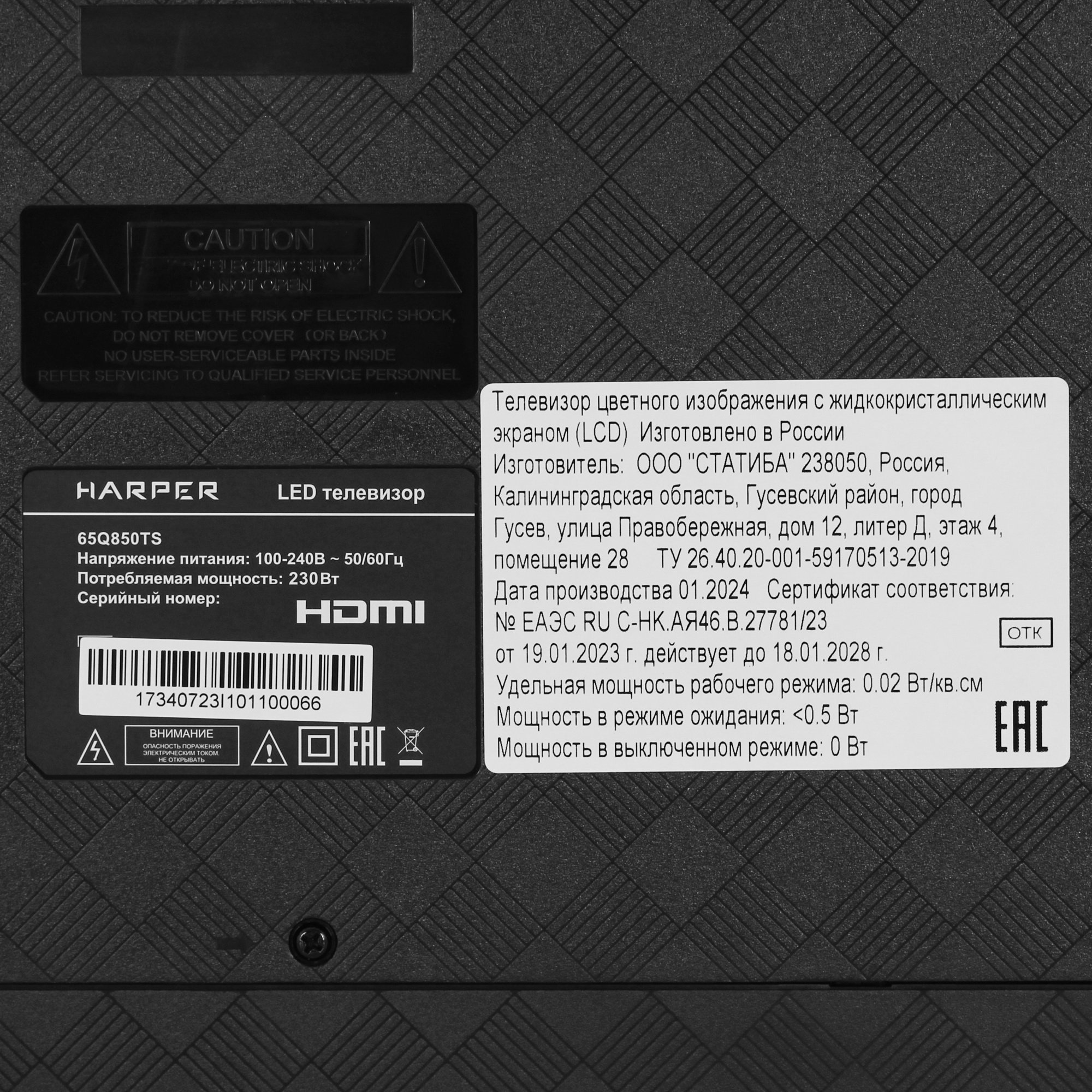 Черный безрамочный телевизор Harper 65Q850TS с 65-дюймовым экраном показывает изображение в разрешении Ultra HD (4K) 2160p. Поддержка HDR и технологии HLG гарантирует достоверную цветопередачу даже в условиях недостаточной освещенности. Яркость 350 Кд/м² и контрастность 20000 оттенков сохраняются при просмотре телевизора максимум под углом 178°. Встроенный 3D цифровой фильтр корректирует изображение, подавляя нежелательные спектры сигнала.