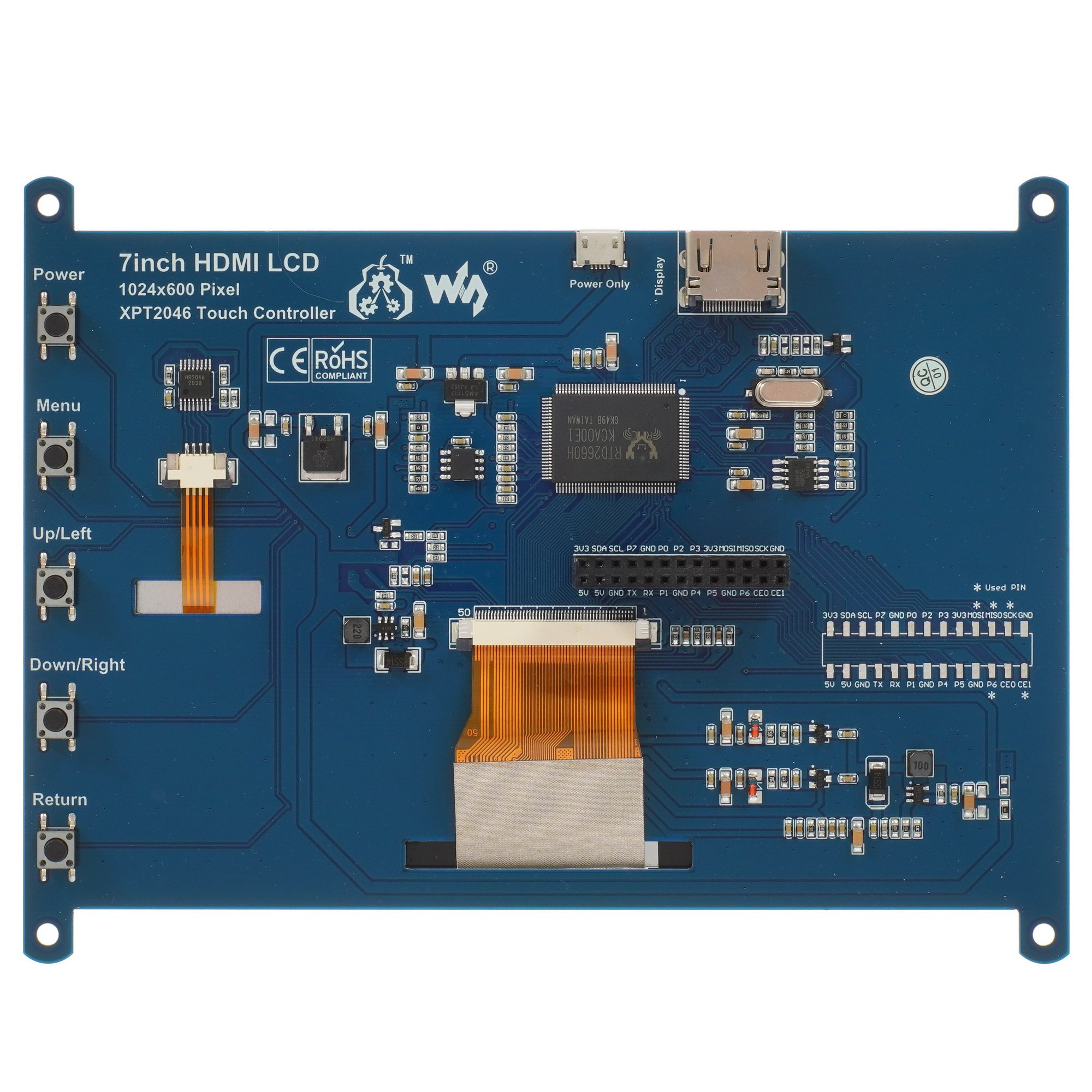 Резистивный сенсорный дисплей без корпуса ACD18-RA418 Waveshare 7"; 1024x600 IPS матрица, вход HDMI, питание по USB, для Raspberry Pi 3