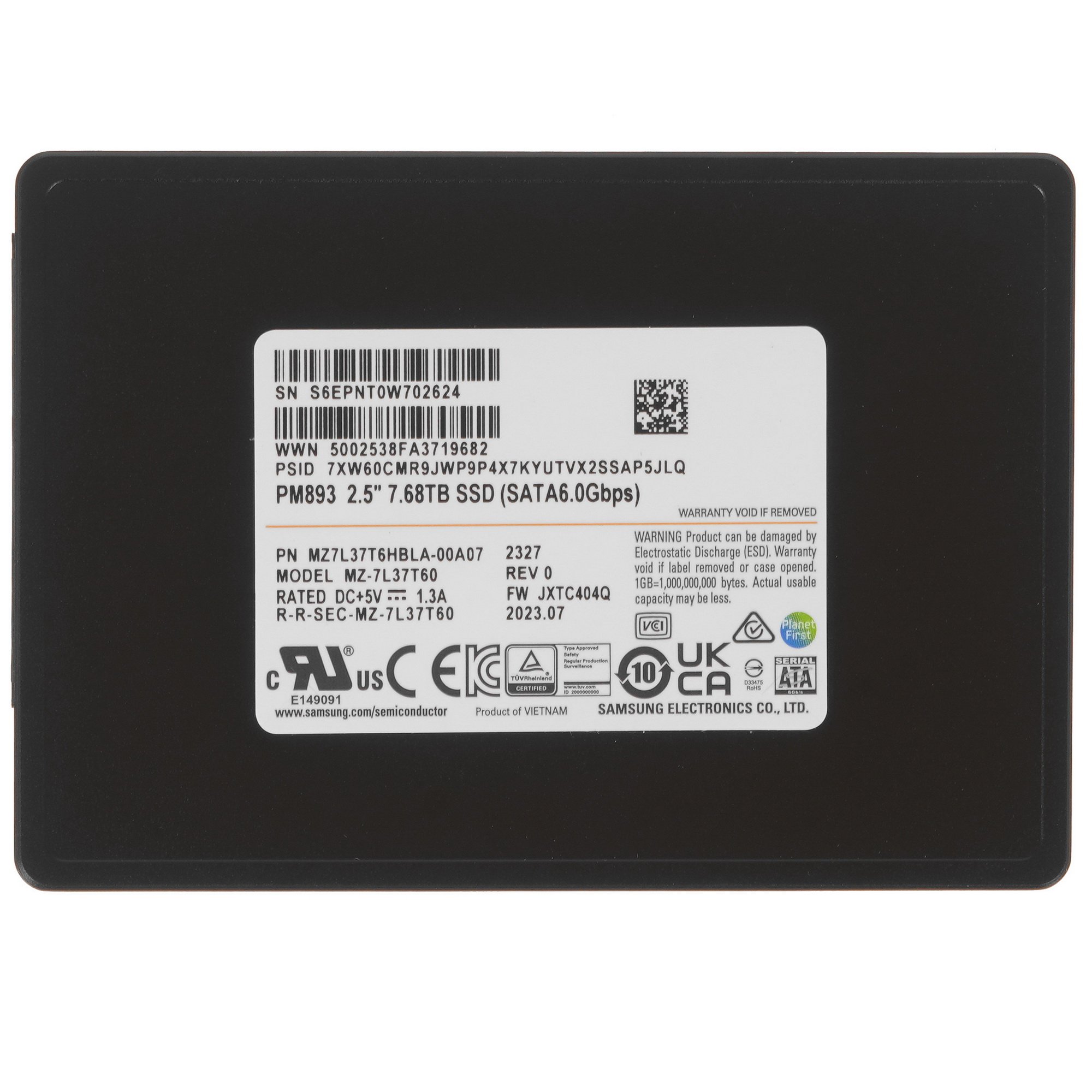 Накопитель SSD Samsung PM893, 7.68Tb, SATA III, 2.5", R/W 520/500