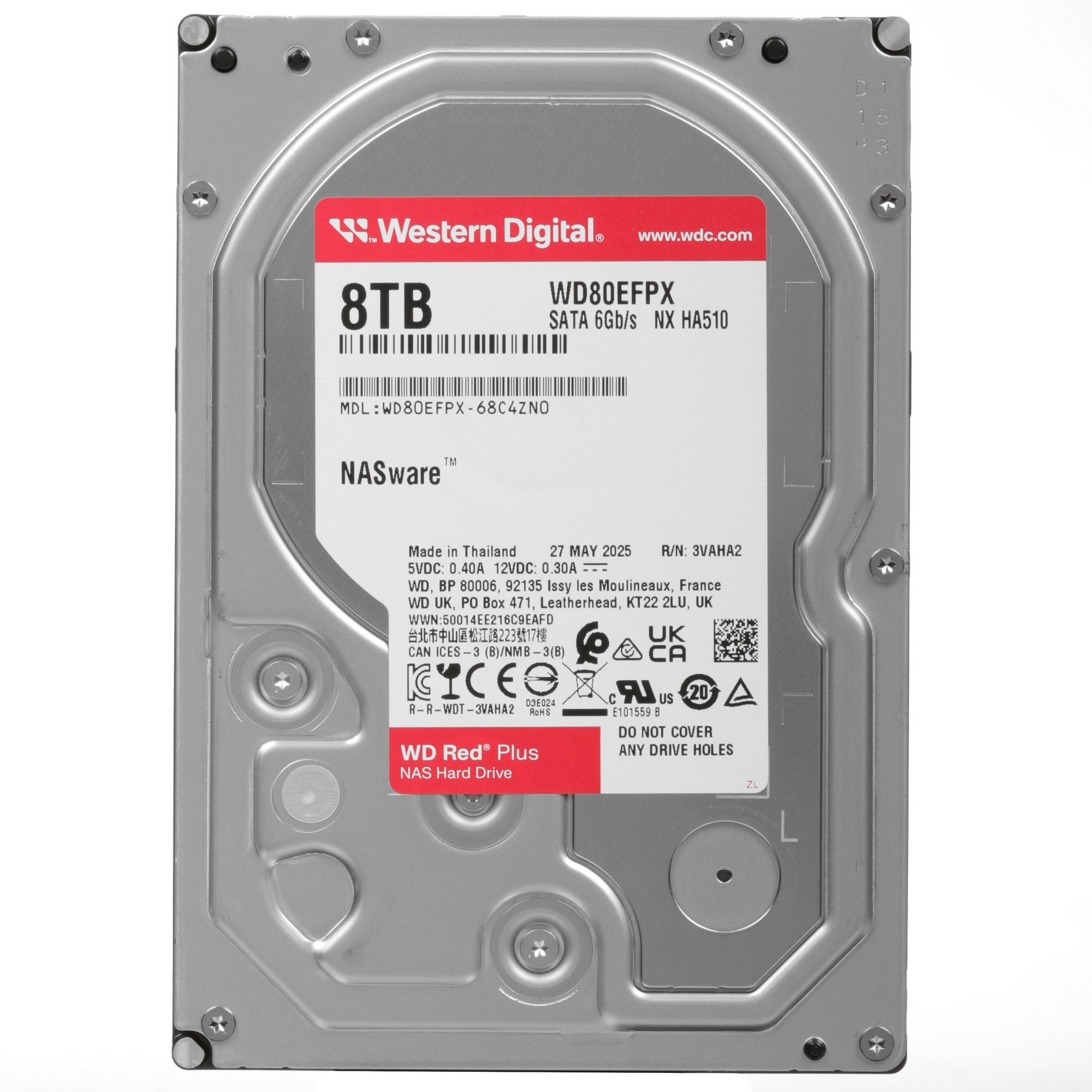 Жесткий диск Western Digital Red Plus NAS HDD 3.5" SATA 8Tb, 5640RPM, 256MB buffer, CMR, WD80EFPX, 1 year