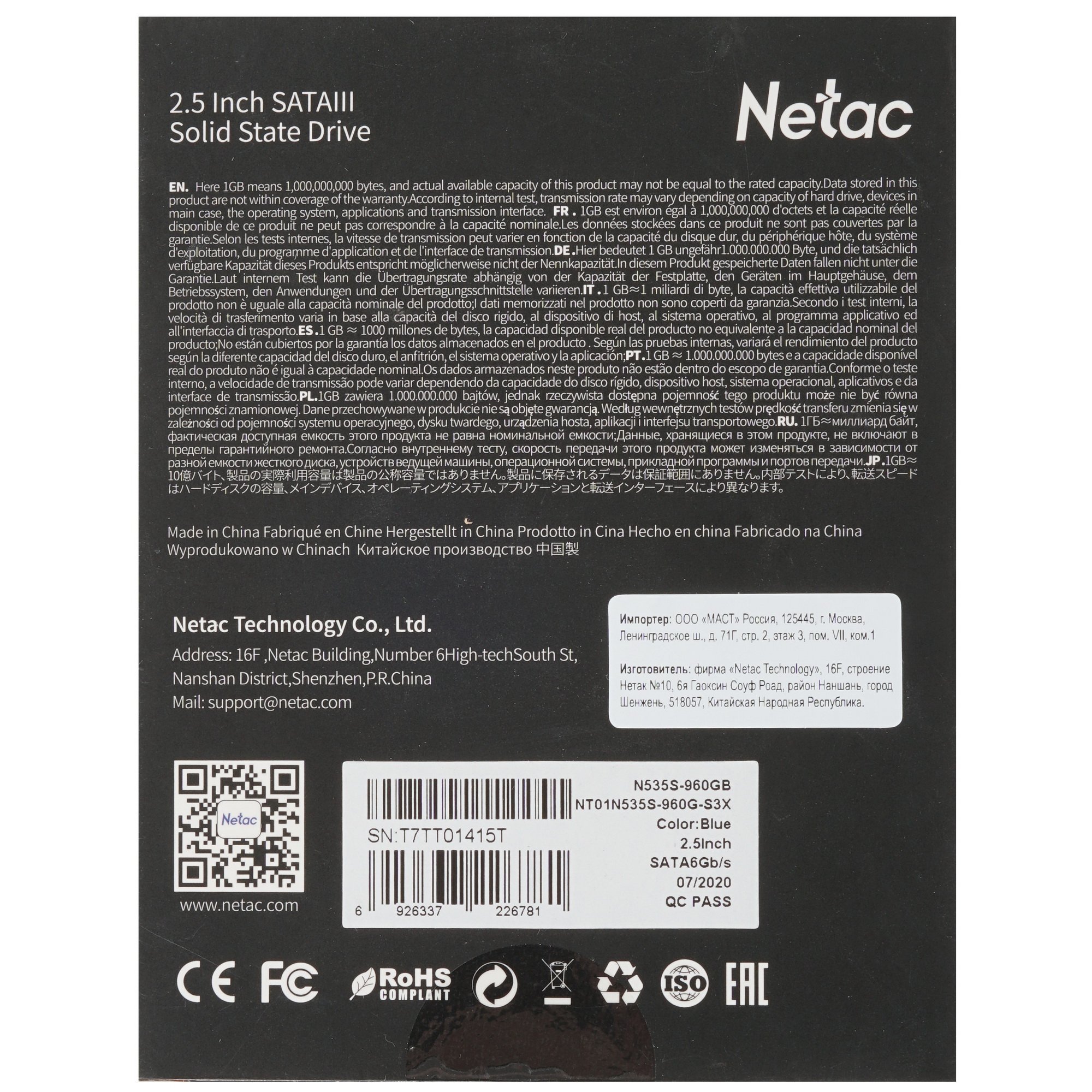 Накопитель SSD Netac N535S, 960Gb, SATA3, 2.5", 560/520