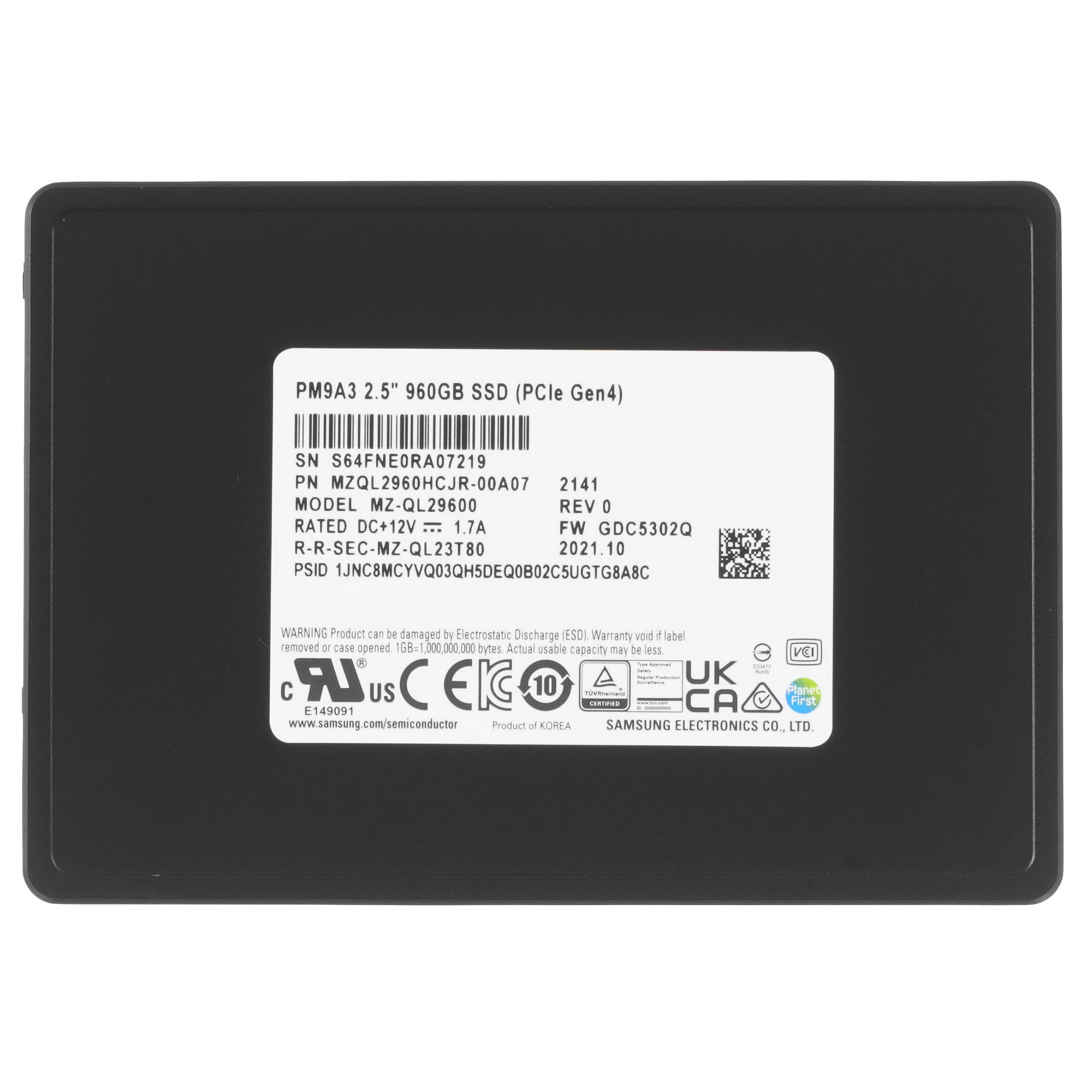 Накопитель SSD Samsung Enterprise PM9A3 черный MZQL2960HCJR-00A07 960Gb, PCIe 3.1 x4, 2.5", U.2, NVMe, R/W 3200/1100