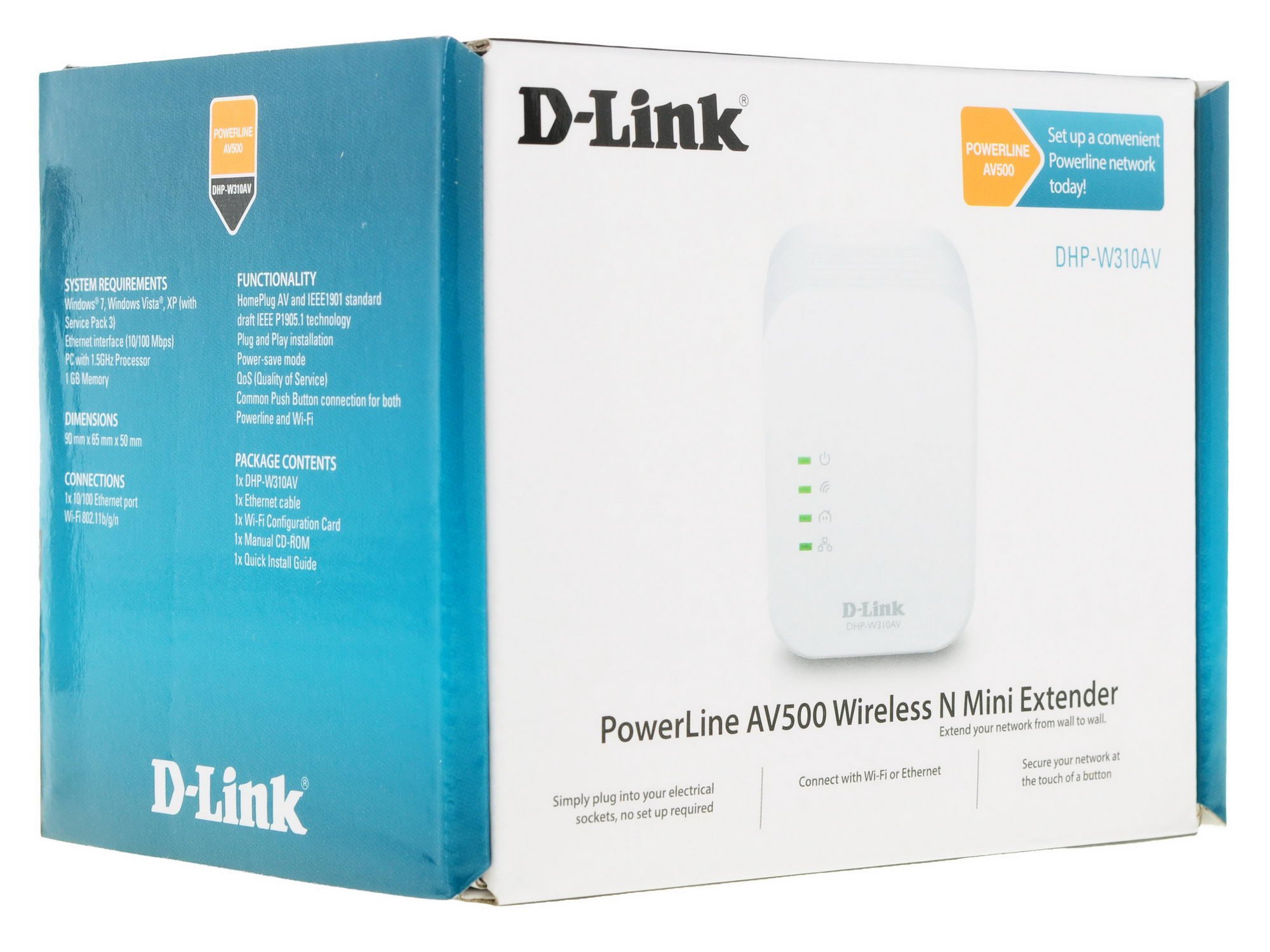 Беспроводной PowerLine-адаптер D-Link DHP-W310AV N300 с поддержкой HomePlug AV