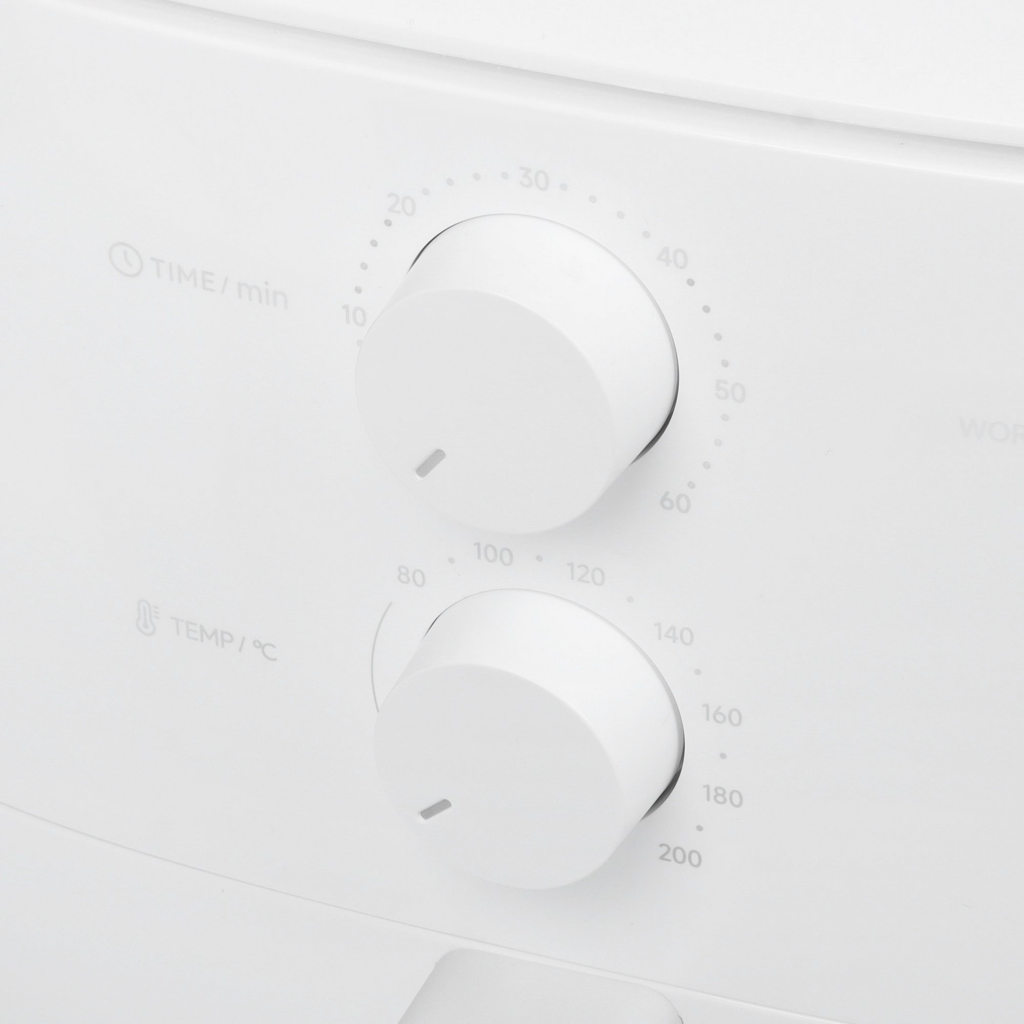Аэрогриль Xiaomi Air Fryer Essential 6L белого цвета имеет мощность 1550 Вт и достигает температуру от 80°C до 200°C. Антипригарная чаша объемом 6 л не требуют применения масла или пергамента. Модель оснащена механическими регуляторами для упрощения приготовления блюд. Управление происходит с помощью поворотного механизма, на котором можно выбрать температуру или выставить таймер.