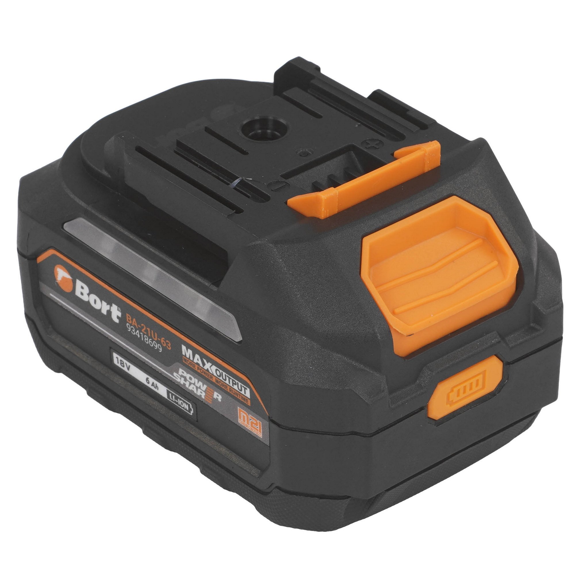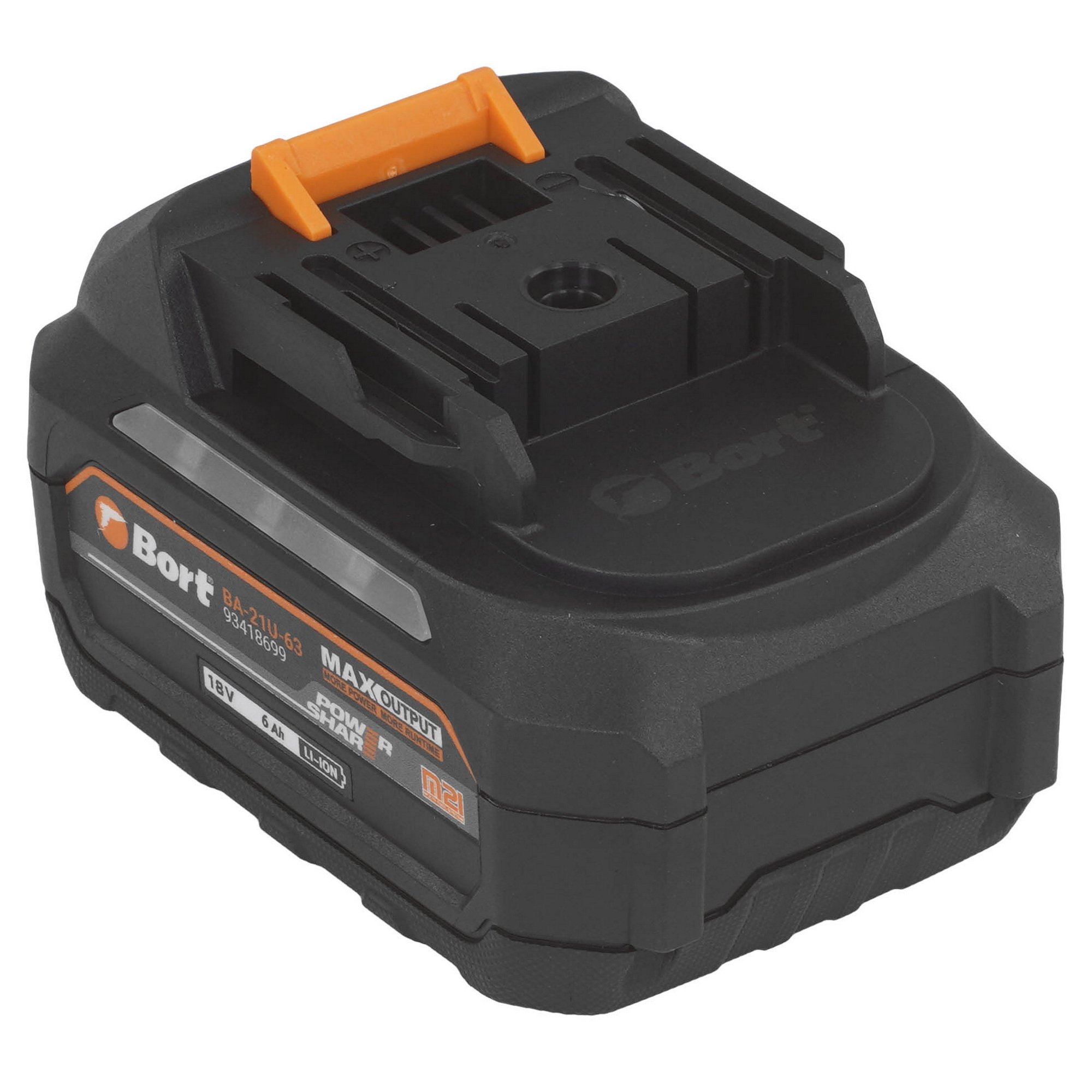 Аккумулятор Bort BA-21U-63 с выходным напряжением 18 В подходит для совместного использования с дрелями-шуруповертами, лобзиками, пилами, перфораторами и другими инструментами производителей Bort и Makita. Источник энергии обладает емкостью 6 А*ч. Литий-ионная технология обеспечивает стабильную автономную работу техники и исключает эффект запоминания остаточного заряда. Слайдерный механизм крепления с нажимной кнопкой гарантирует удобную и прочную фиксацию аккумулятора Bort BA-21U-63 на направляющих в нижней части рукоятки инструмента. На корпусе предусмотрен индикатор уровня доступного заряда.
