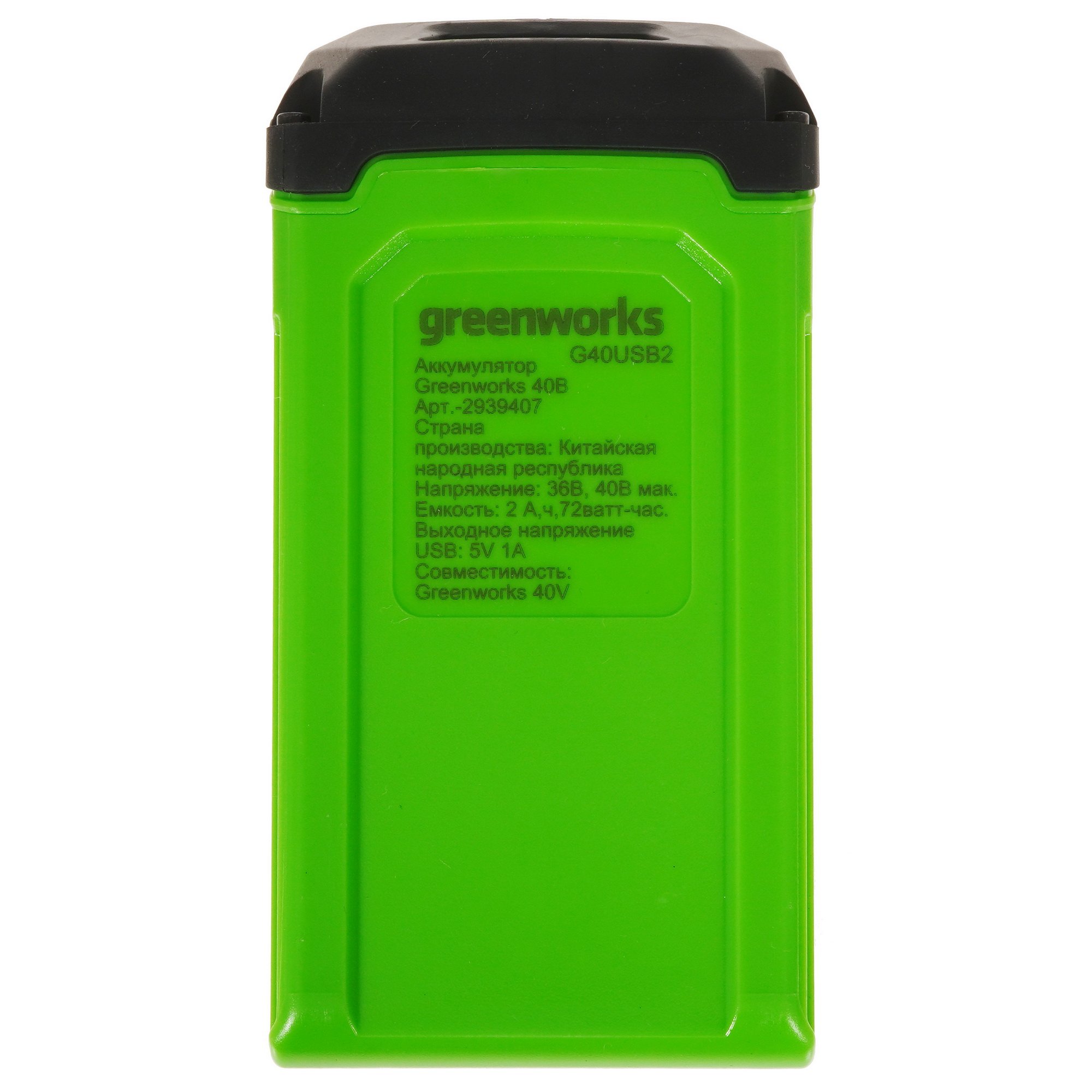 Аккумулятор с USB разъемом GreenWorks G40USB2 для техники 40V, 2 А.ч