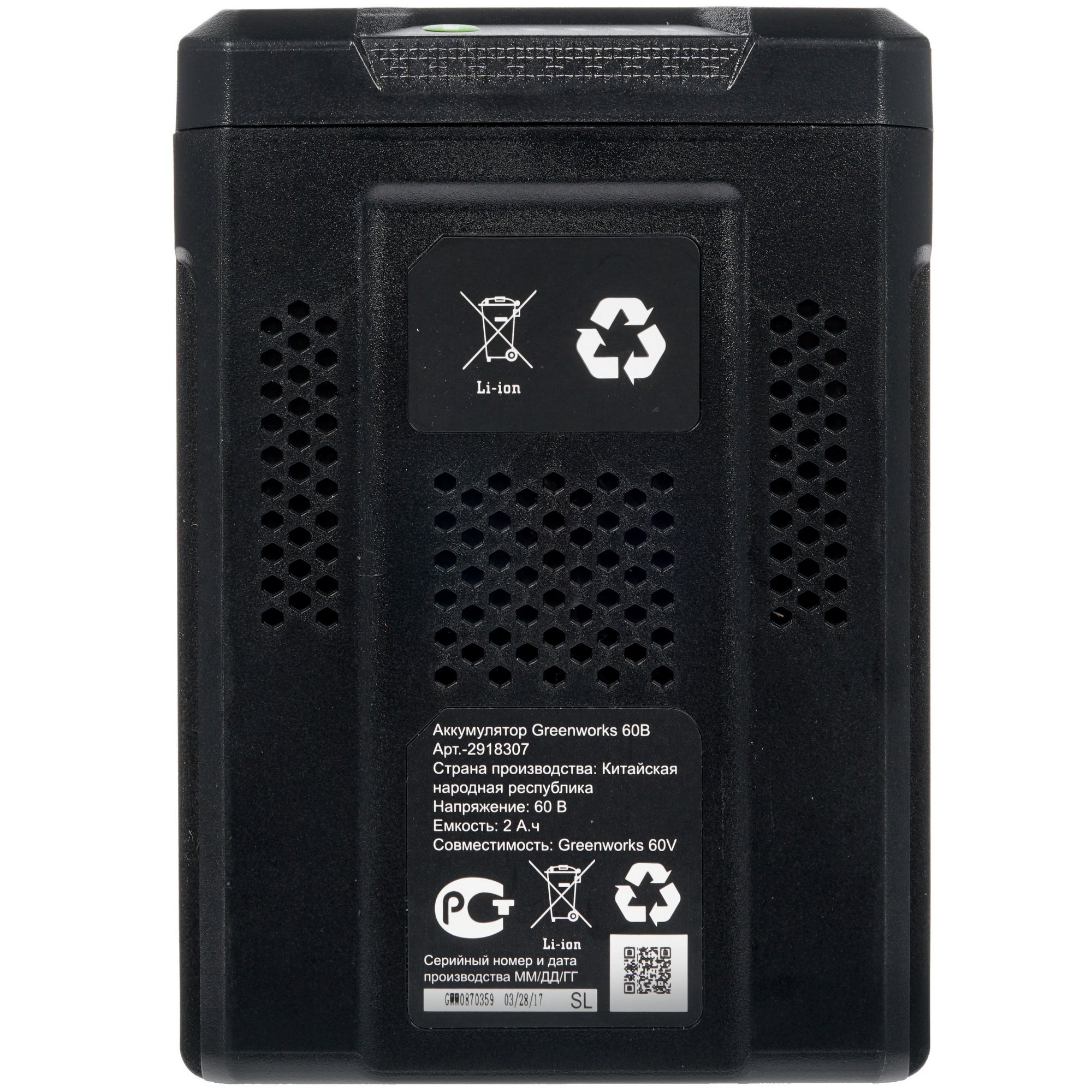 Аккумулятор GREENWORKS G60B2 (2918307)60В 2А·ч литий-ионный
