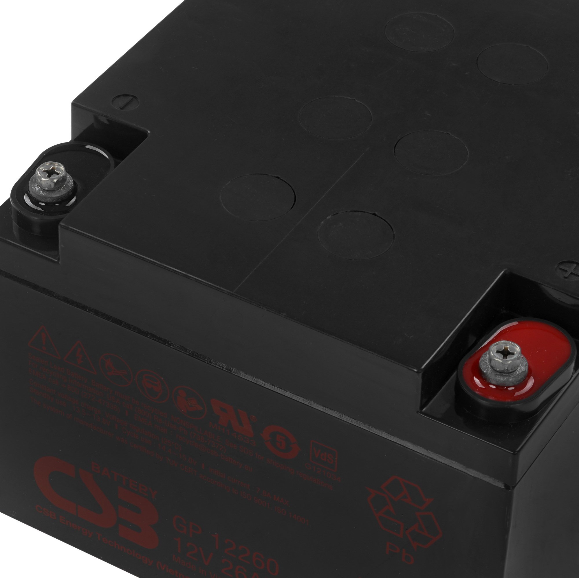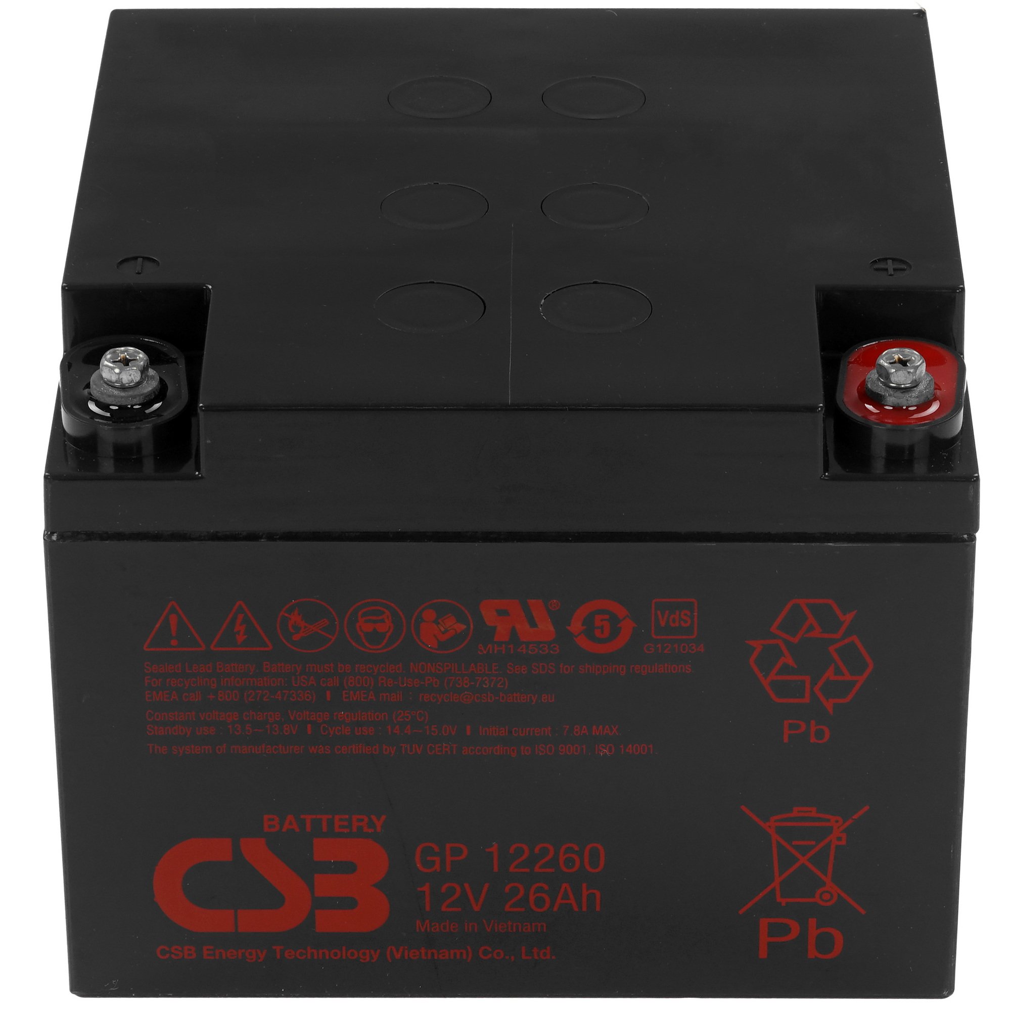 Благодаря низкому саморазряду аккумуляторная батарея для ИБП CSB GP 12260 может до полугода храниться в заряженном виде без значительной потери уровня заряда. При работе в циклическом режиме такая АКБ может выдержать до 260 циклов разряда на 100% и последующего заряда. Батарея рекомендована для эксплуатации в помещениях.