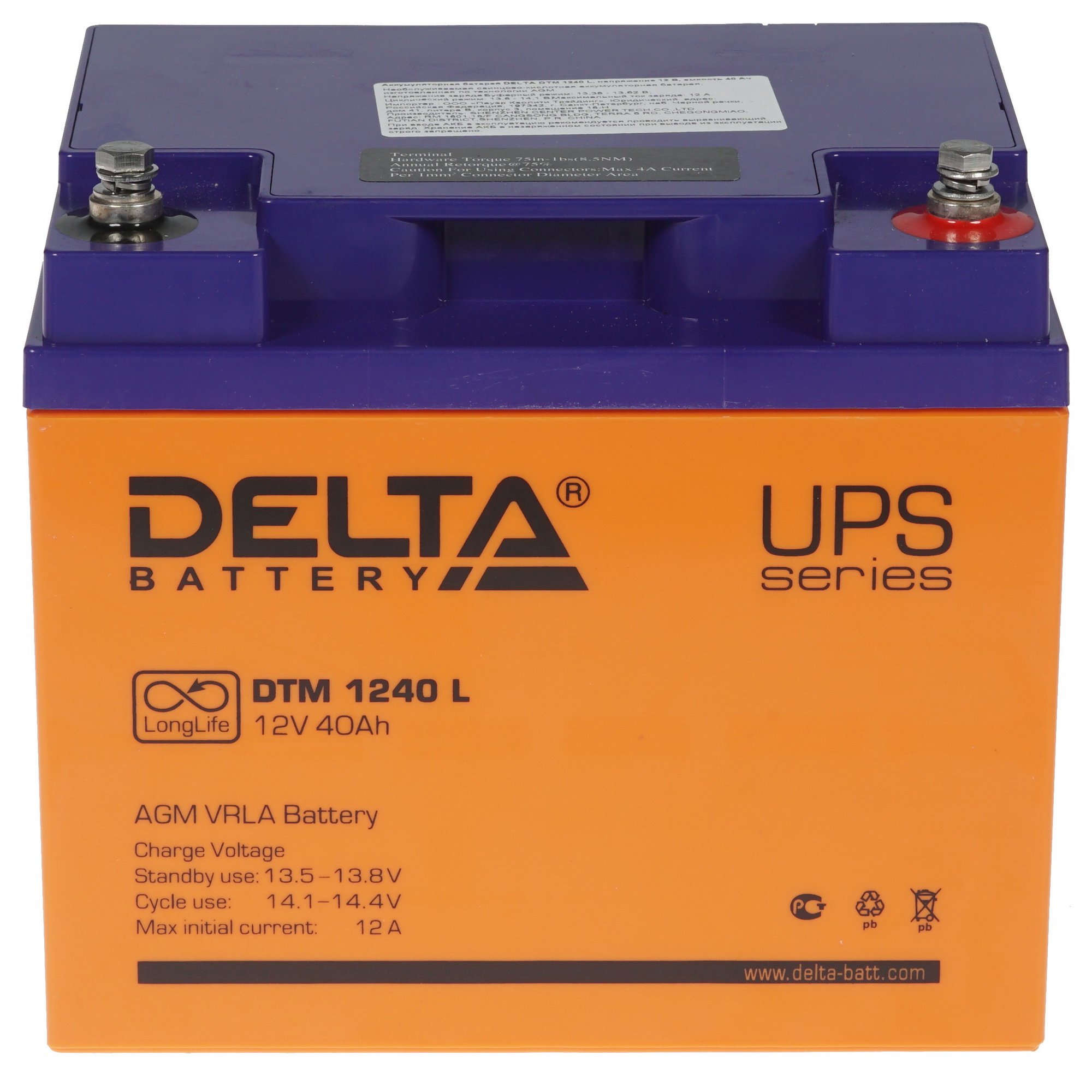 Батарея Delta DTM 1240 L (12V, 40Ah) с увеличенным сроком службы (10 лет)