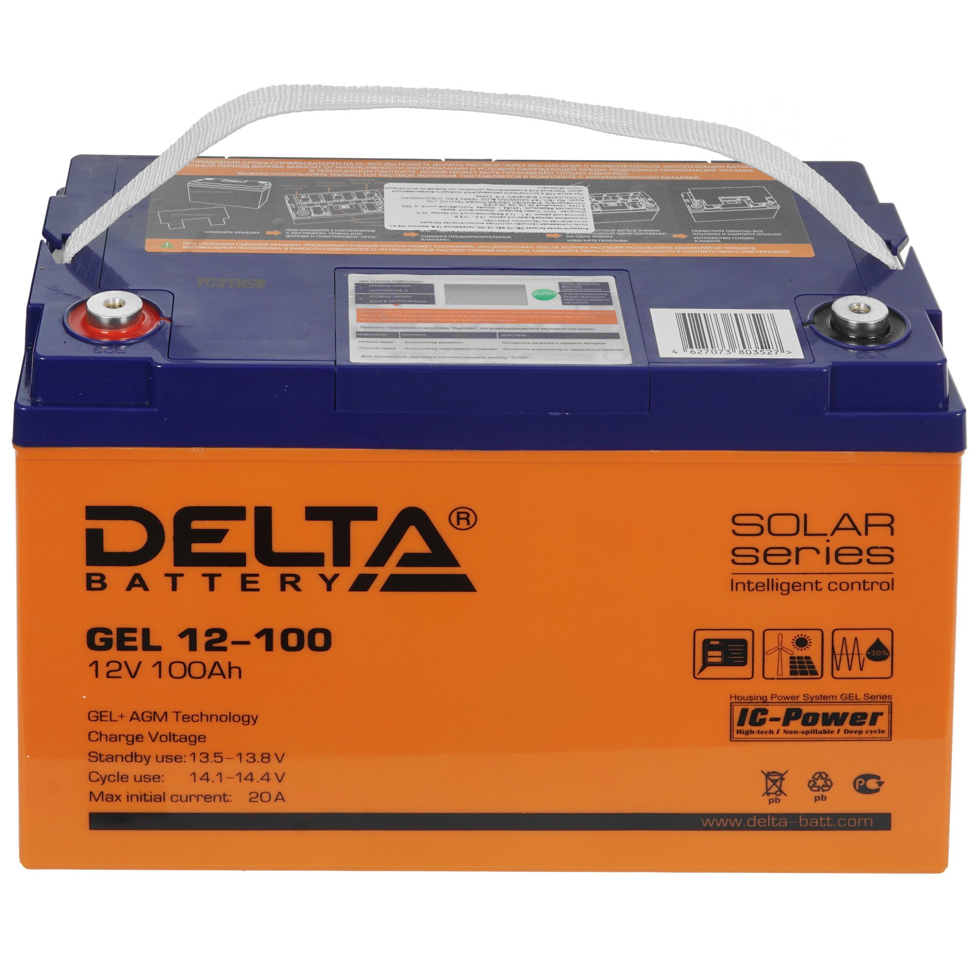 Аккумуляторная батарея для ИБП Delta GEL 12-100 изготовлена по технологии AGM+GEL, благодаря чему отличается высокими разрядными характеристиками и длительным ресурсом эксплуатации. Источник питания предусматривает работу как в буферном, так и в циклическом режиме. Данная модель обладает емкостью 100 А*ч, диапазоном тока разряда 20-900 А и напряжением 12 В. Аккумуляторная батарея Delta GEL 12-100 выполнена в корпусе из прочного пластика ABS. В верхней части расположена ручка для простого перемещения. Заявленный производителем ресурс службы источника питания составляет 12 лет.