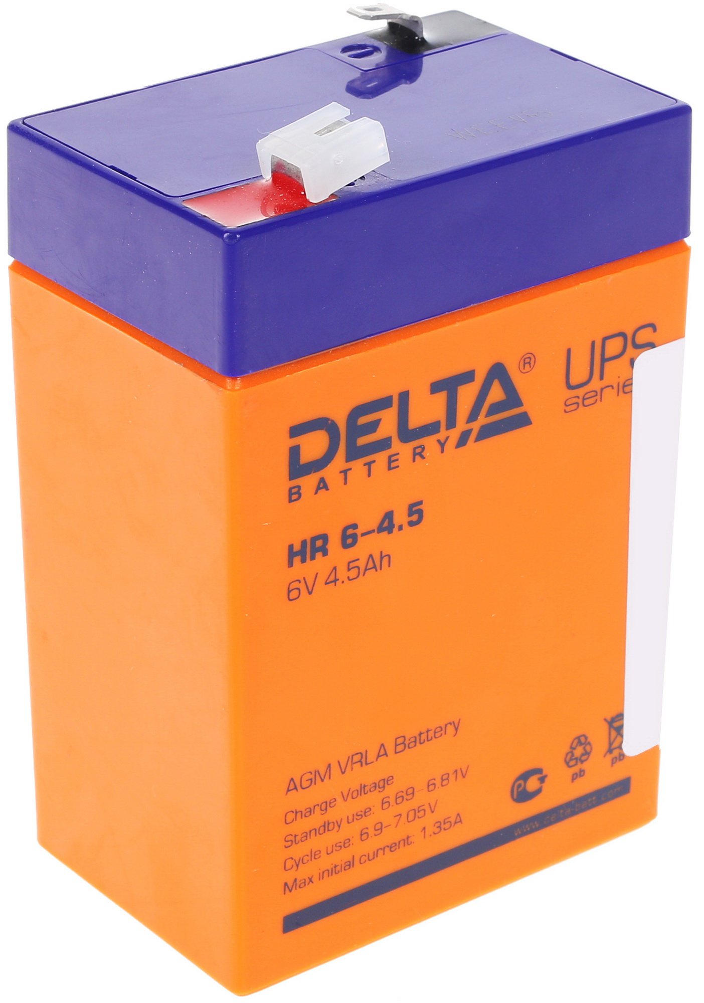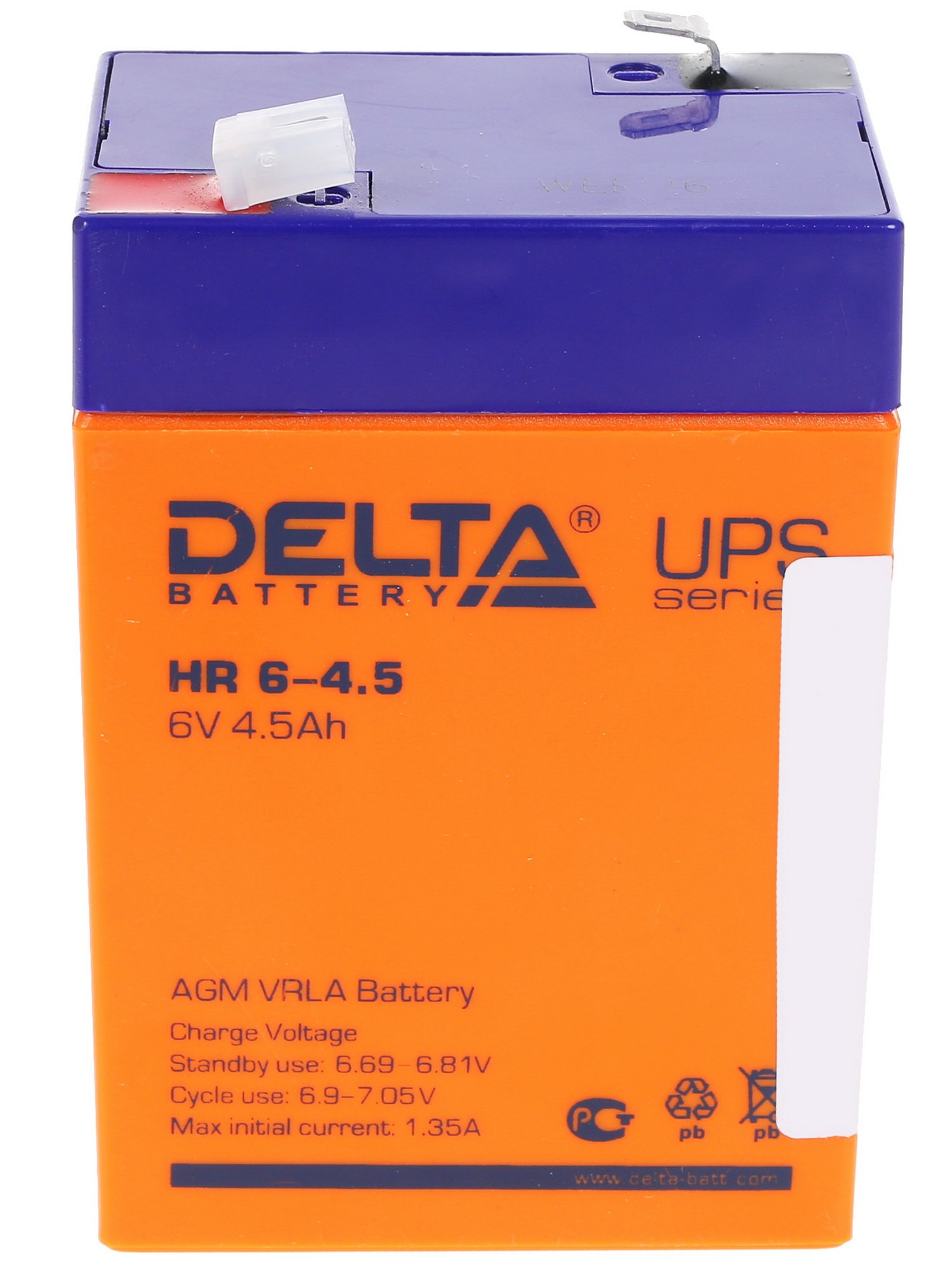 С аккуммуляторной батареей для ИБП Delta HR 6-4.5 вы сможете всегда пребывать в полной уверенности, что ваш ИБП всегда находится в полной готовности защитить вашу технику и информацию от скачков напряжения, выгорания и преждевременных поломок. Эта батарея имеет большую емкость в 4.5 А∙ч и рассчитана на напряжение в 6 В. При этом Delta HR 6-4.5 неприхотлива при хранении и работе. Вы легко можете держать ее в заряженном состоянии даже в уличных условиях в сильный мороз или в экстремальную жару, в диапазоне -20 °C до 60 °C.