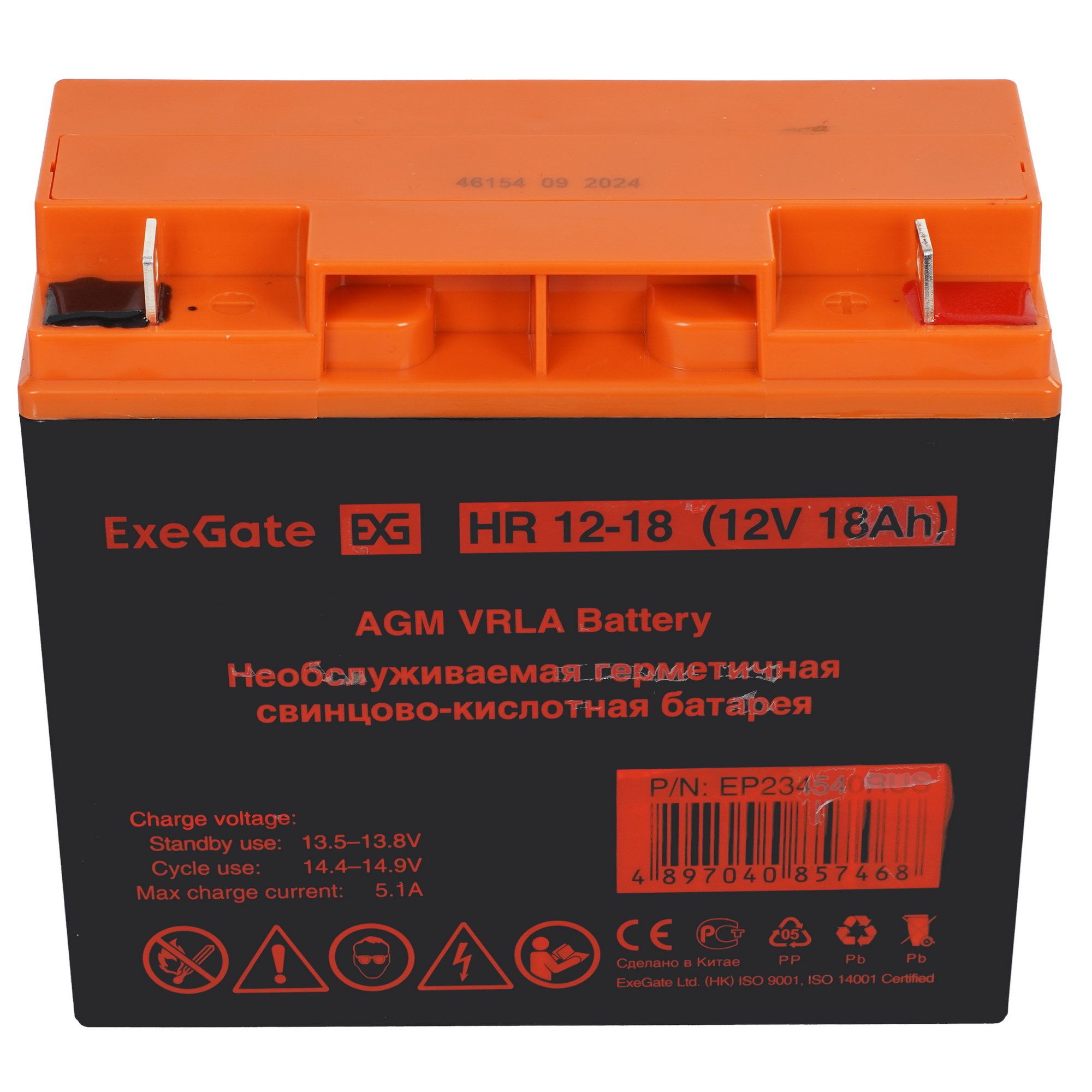 Батарея ExeGate EP234540RUS HR 12-18/EXG12180 (12V 18Ah), клеммы под болт М5