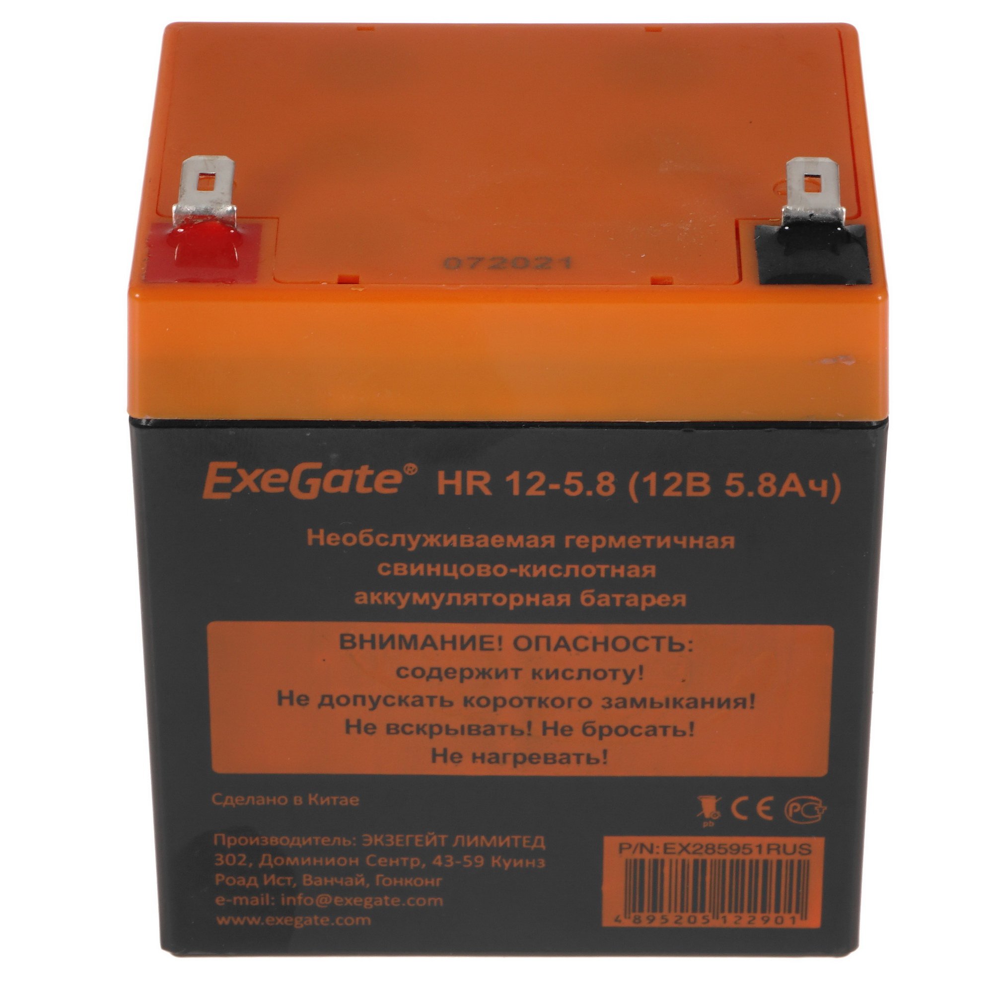 Аккумуляторная батарея для ИБП ExeGate HR 12-5.8 изготовлена на основе технологии AGM, что обеспечивает низкий уровень сопротивления. Данный источник питания оптимизирован для эксплуатации в режимах постоянного подзаряда и разряда-заряда. Батарея обладает емкостью 5.8 А*ч и максимальным током разряда 80 А. Корпус выполнен из термостойкого пластика, а полностью герметичная конструкция исключает утечку электролита. Заявленный производителем ресурс службы около 8 лет гарантирует высокий уровень стабильности и надежности ExeGate HR 12-5.8.