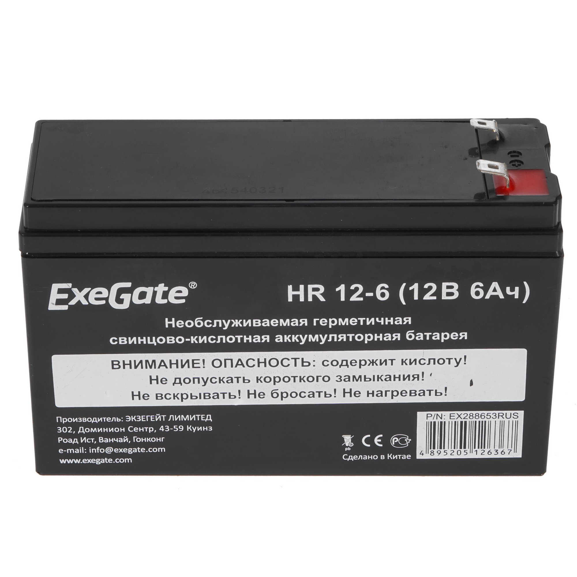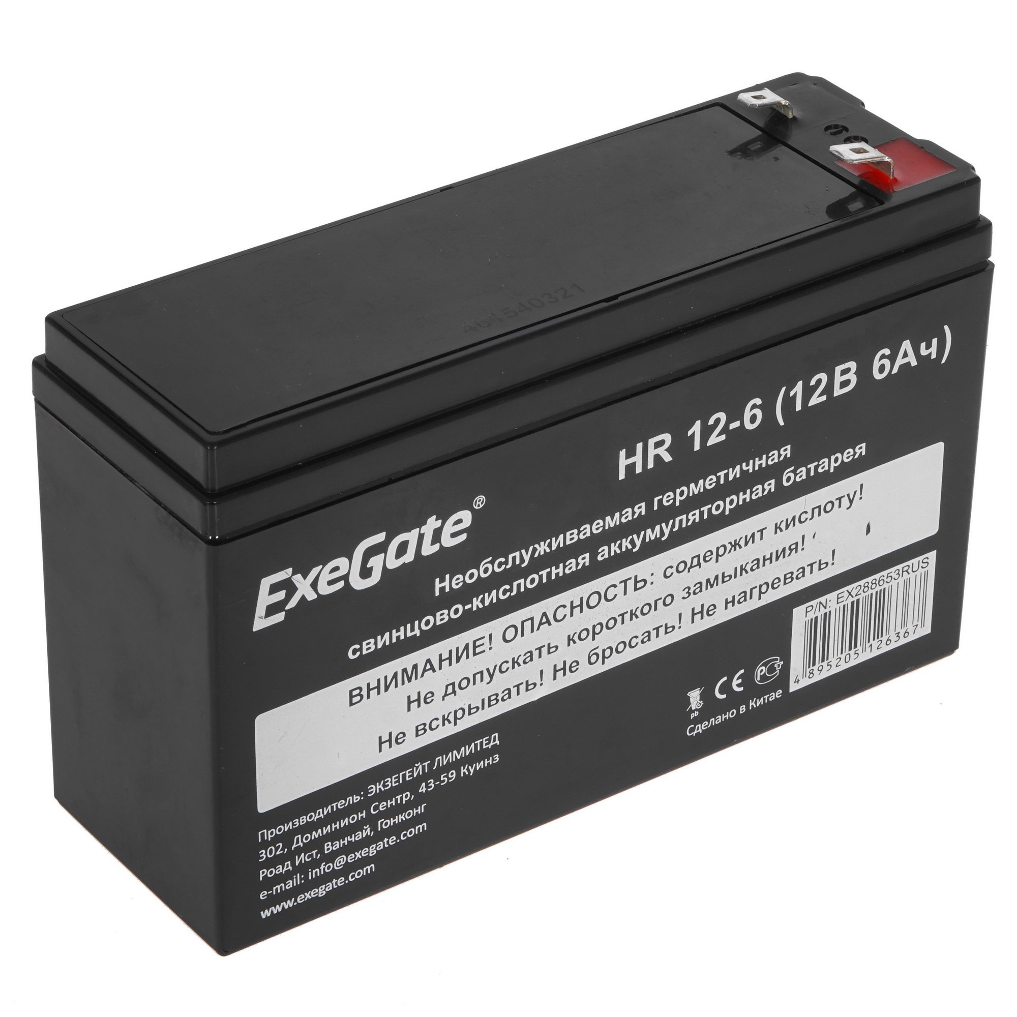 Аккумуляторная батарея ExeGate EX288653RUS HR 12-6 (12V 6Ah 1224W, клеммы F2+F1-)