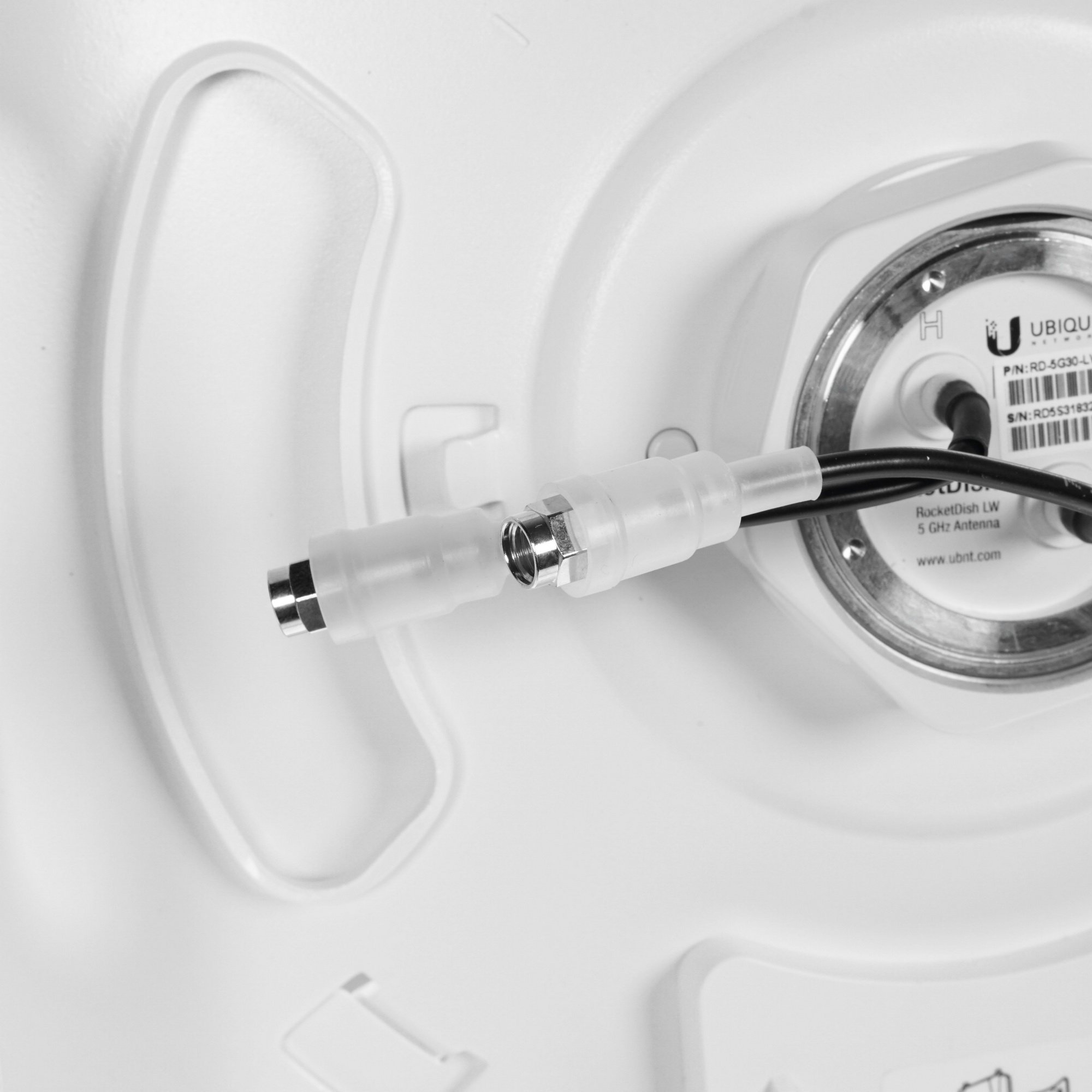 Антенна Ubiquiti RocketDish RD-5G30-LW подключается к мощной беспроводной точке доступа и служит для построения соединения типа "точка-точка" с целью передачи данных по беспроводному каналу на большое расстояние. Эта рассчитанная на уличную установку направленная модель в белом, защищенном от атмосферных воздействий корпусе оснащена отражателем диаметром 650 мм. При весе 7.5 кг она монтируется на столбе или мачте при помощи вошедших в комплект монтажных принадлежностей. Ее сектор покрытия как по горизонтали, так и по вертикали составляет 5.8°.
