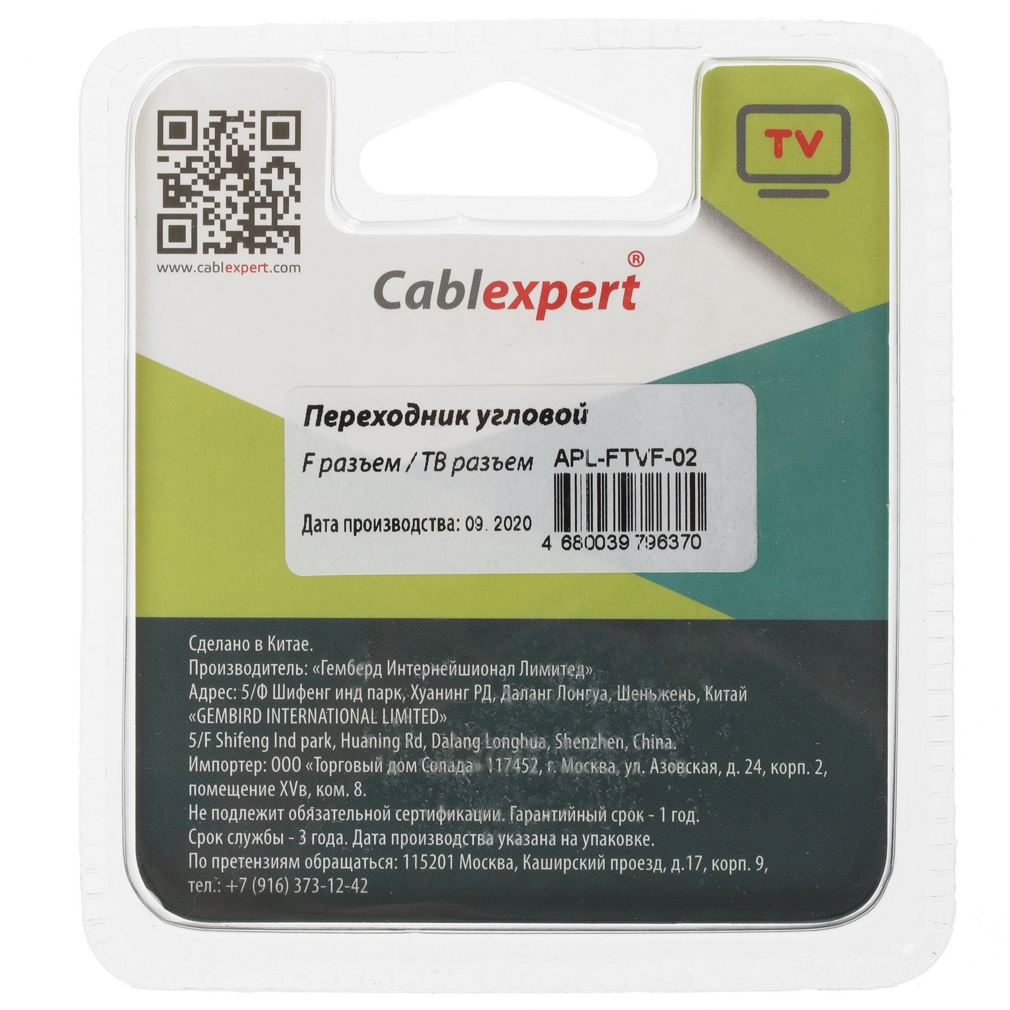 Антенный переходник Cablexpert TV – F обеспечивает высокое качество передачи изображения и звука. Данный переходник применяется при необходимости подключения к телевизионному оборудованию эфирного, кабельного и спутникового телевидения. Он оборудован разъемом F с одной стороны и гнездом для подключения к ТВ с другой стороны. Конструкция L-образной формы повышает удобство подключения в труднодоступных местах. Переходник Cablexpert TV изготовлен из высококачественного металла, поэтому устойчив к механическим повреждениям и появлению коррозии.
