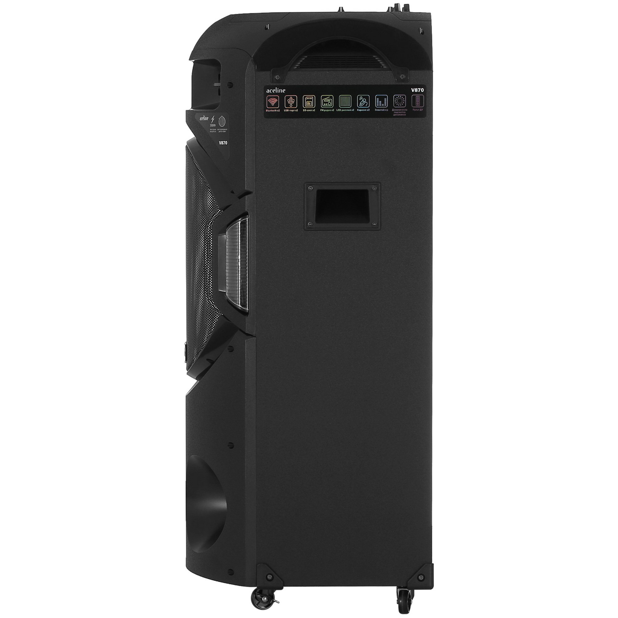 Домашняя аудиосистема Aceline V870 выполнена в корпусе с динамической подсветкой и светодиодным диско-шаром, которые способны создавать особую атмосферу при прослушивании аудио. Акустика с выходной мощностью 500 Вт формирует насыщенный детализированный звук. Модель оснащена 2 входами для микрофонов караоке с независимой настройкой эха и громкости, что позволяет петь дуэтом. Благодаря 2 портам USB, 2 считывателям карты памяти SD и технологии Bluetooth можно проигрывать аудио с двух источников сигнала одновременно.