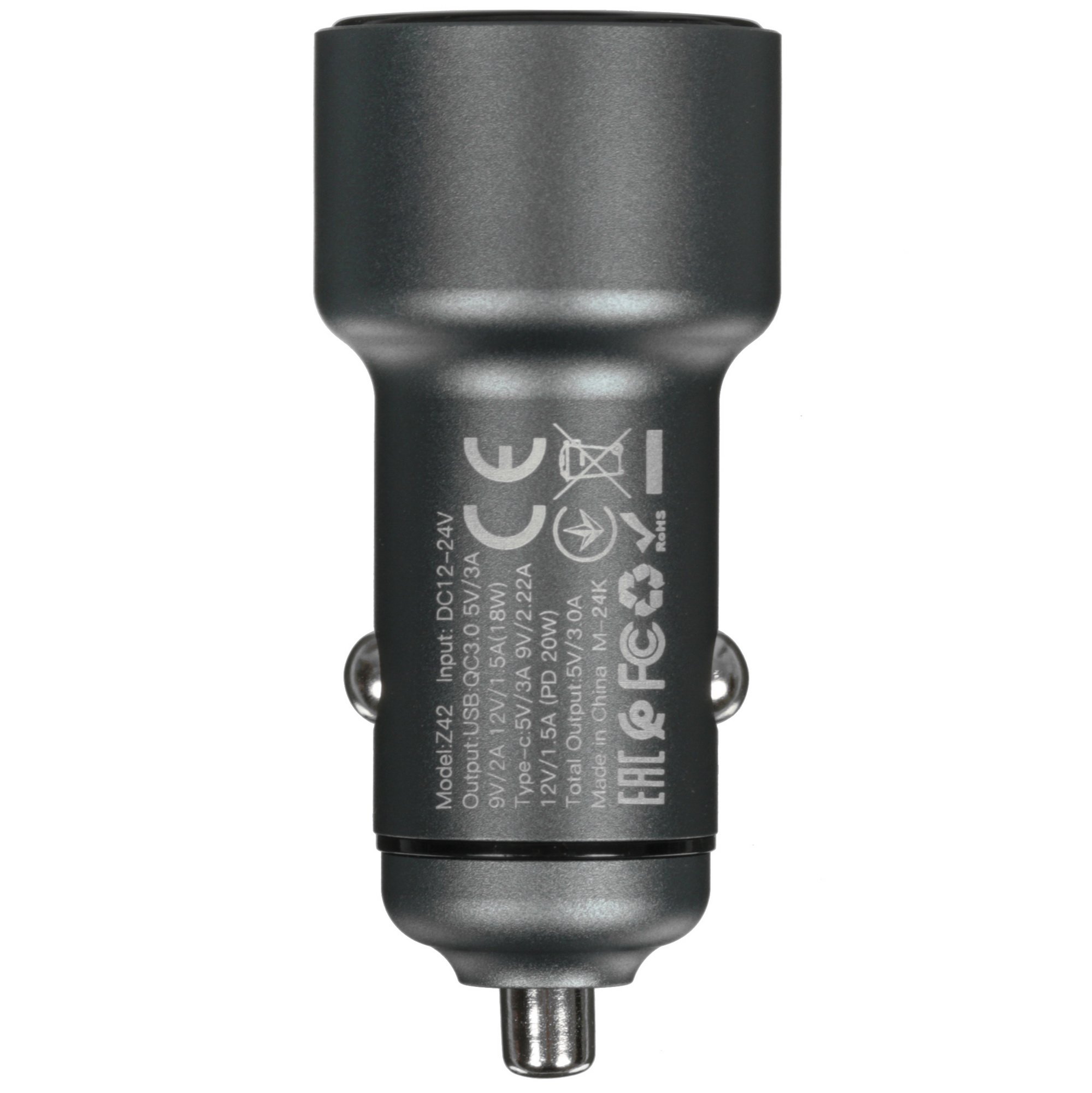 Автомобильная зарядка (от прикуривателя) HOCO Z42, PD20, QC3.0, один порт USB, один порт Type-C, серый