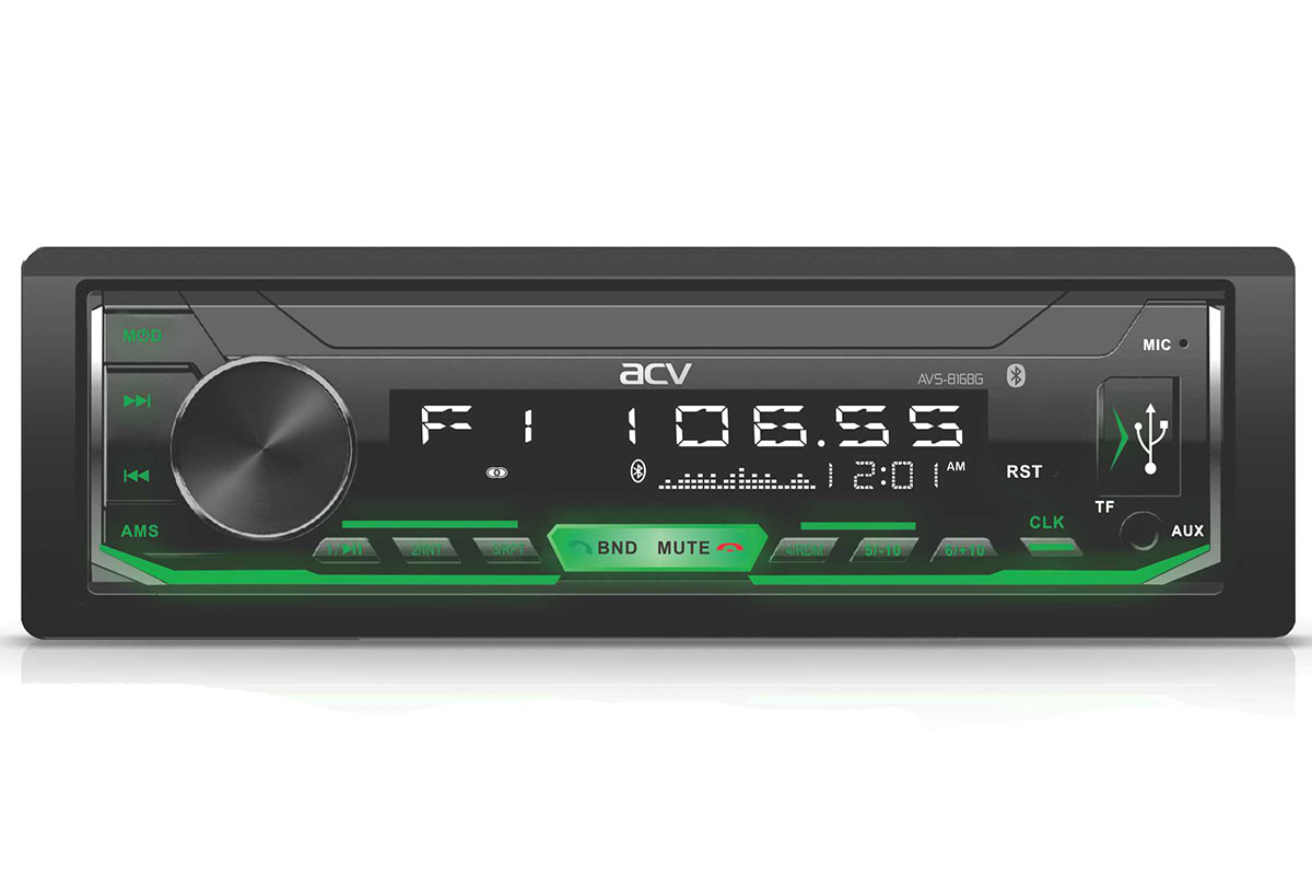 Автопроигрыватель ACV AVS-816BGB выполнен в прочном корпусе формата 1 DIN и отличается простой установкой. Для управления работой и воспроизведением аудио на передней панели модели предусмотрен небольшой LCD-дисплей с яркой подсветкой, а также набор механических кнопок. Модель поставляется в фирменной упаковке вместе с монтажным набором.