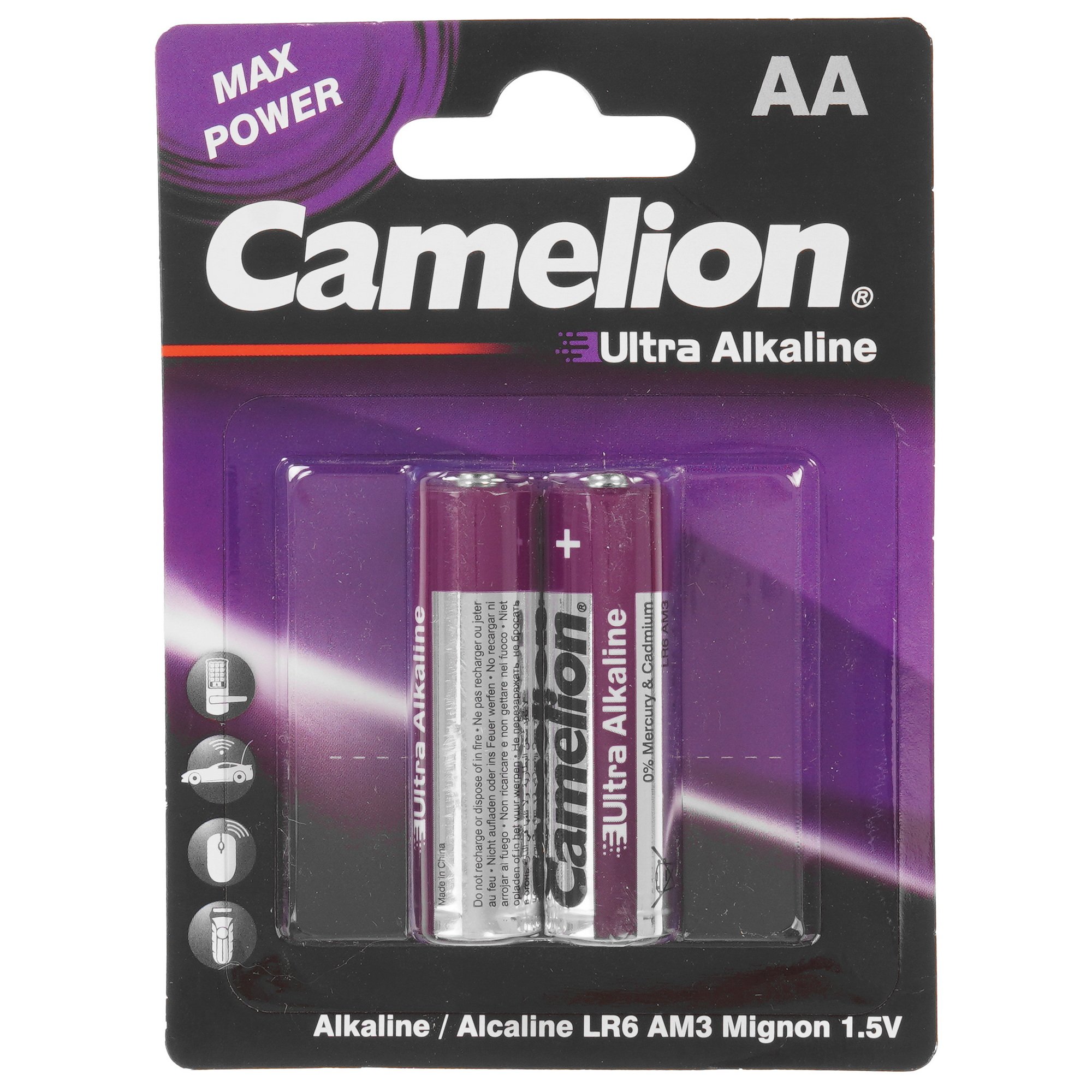 2 щелочные батарейки Camelion Ultra LR6-BP2UT упакованы в пластиковый блистер для защиты от попадания внутрь пыли и влаги. Для снижения риска саморазряда и вытекания электролита хранить элементы питания следует в сухом отапливаемом помещении при температуре от +15 °C до +25 °C. Одновременная установка со старыми батарейками может привести к перегреву и неисправной работе, повышенному разряду или повреждению устройства.