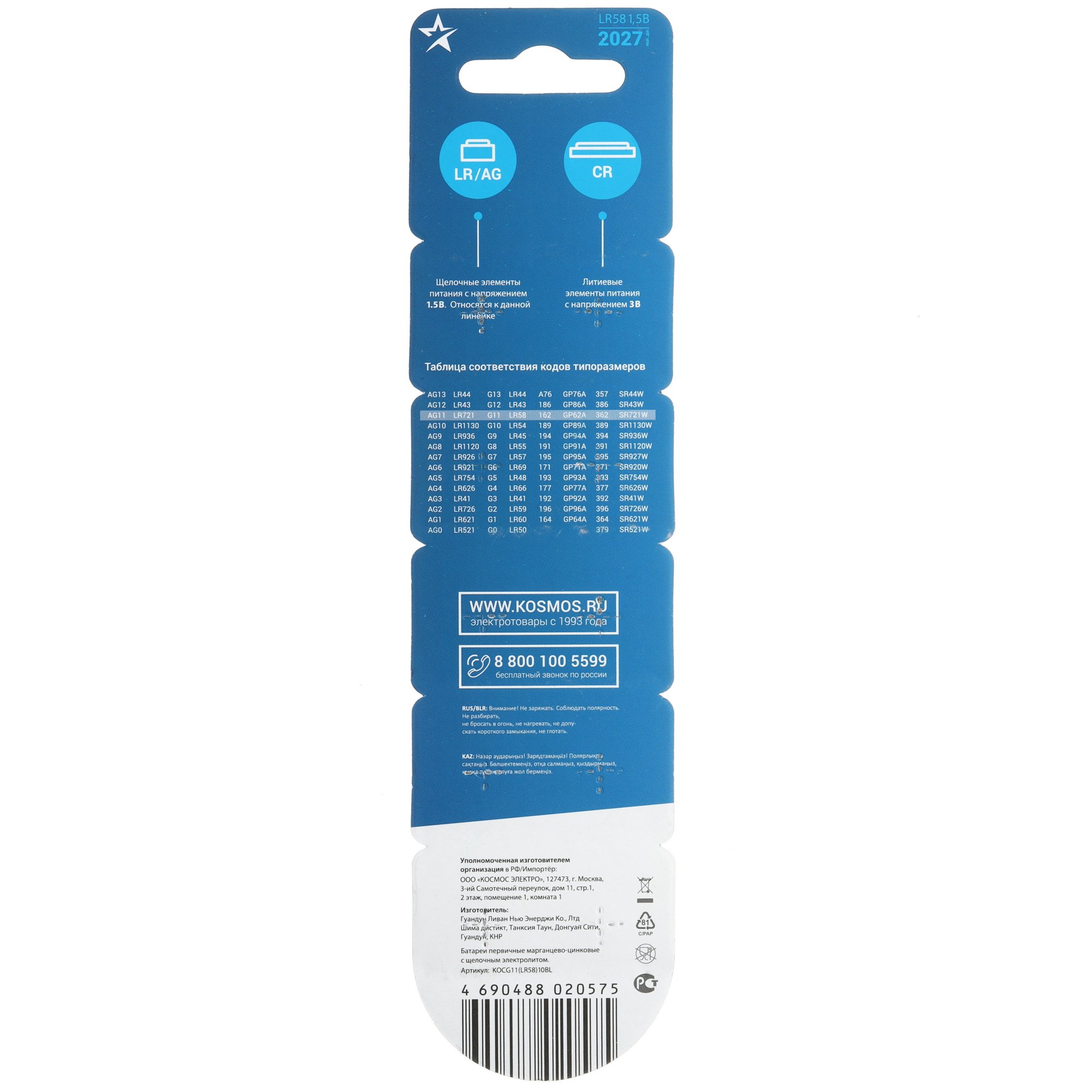 Элемент питания алкалиновый "таблетка" AG11 LR58 (блист.10шт) Космос KOCG11(LR58)10BL