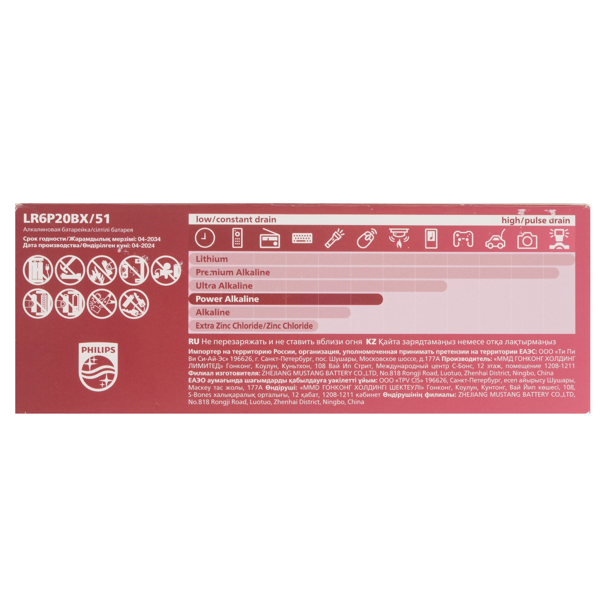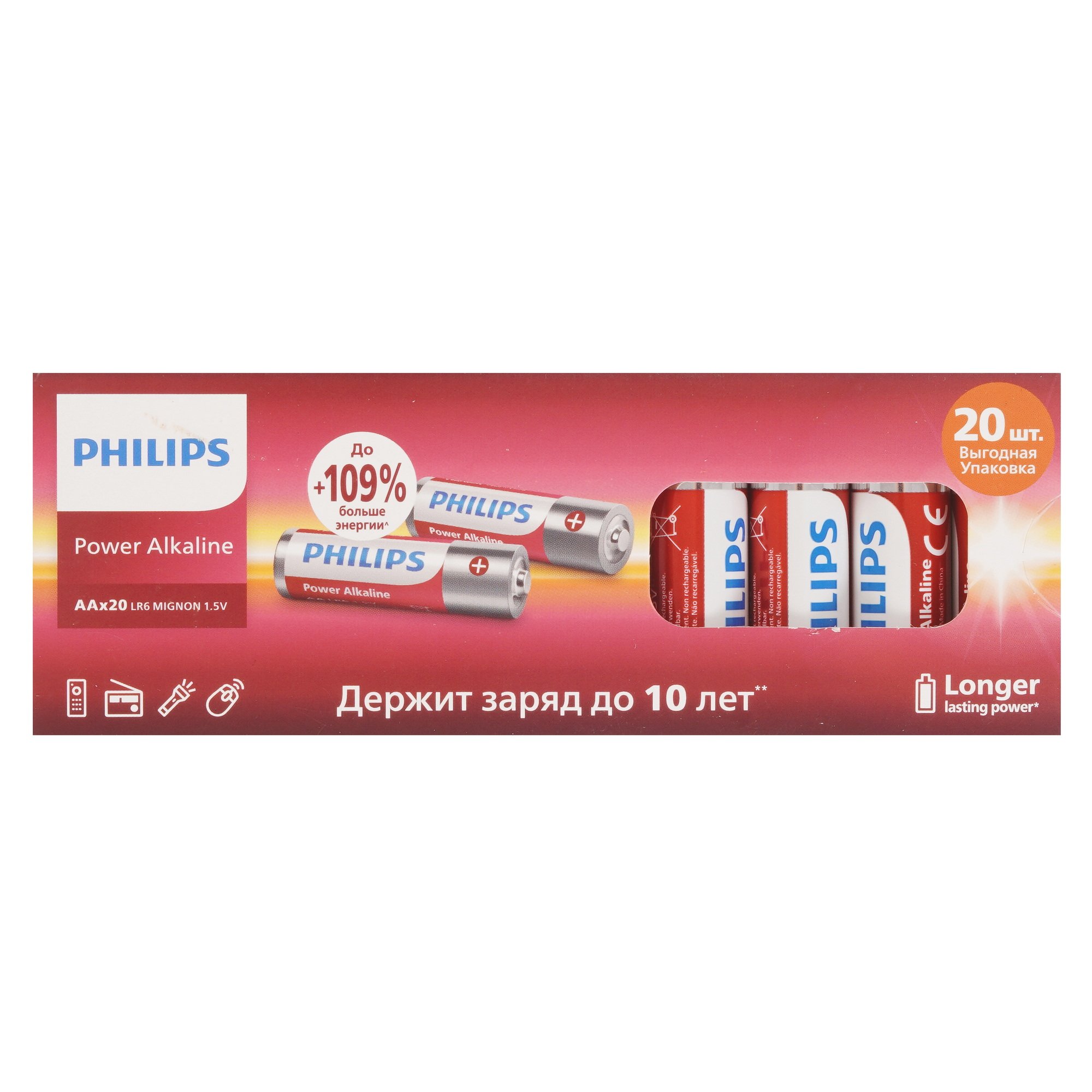 Элемент питания алкалиновый AA/LR6 1.5В Power (блист. 20шт) Philips Б0064673