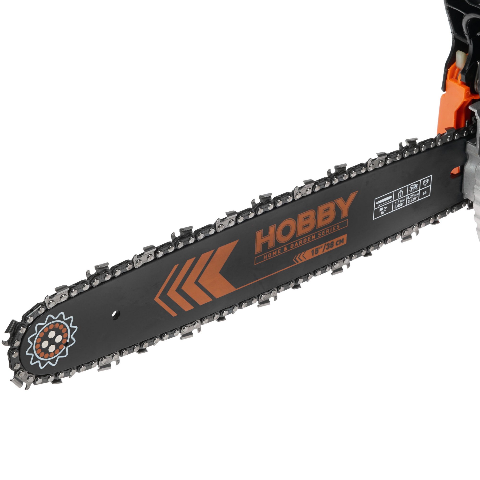 Бензопила Carver HOBBY HSG 145-15 получила 15-дюймовую шину с направляющей звездочкой и цепь с 64 режущими зубьями для достижения быстрого и качественного распила. Система автоматической смазки цепи позволяет продлить срок службы компонентов пилы. Широкая эргономичная рукоятка помогает удобно удерживать инструмент. А быстрое торможение двигателя при отключении и технология защиты от случайного запуска гарантируют безопасность в эксплуатации пилы.