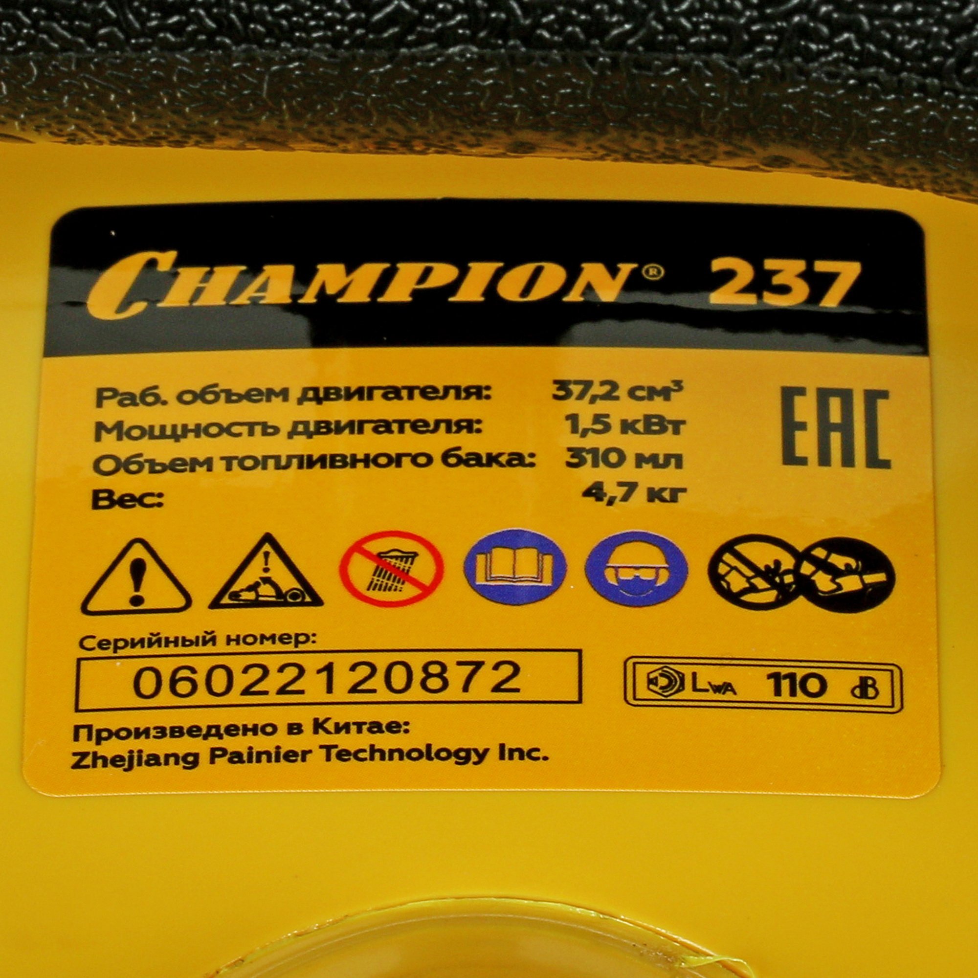 Бензопила Champion 237 представляет собой простой и удобный ручной инструмент при помощи которого вы легко сможете распиливать различные материалы из дерева. Благодаря своим особенностям данная модель может стать отличным выбором для частного и профессионального использования в быту, мастерской или на предприятии.