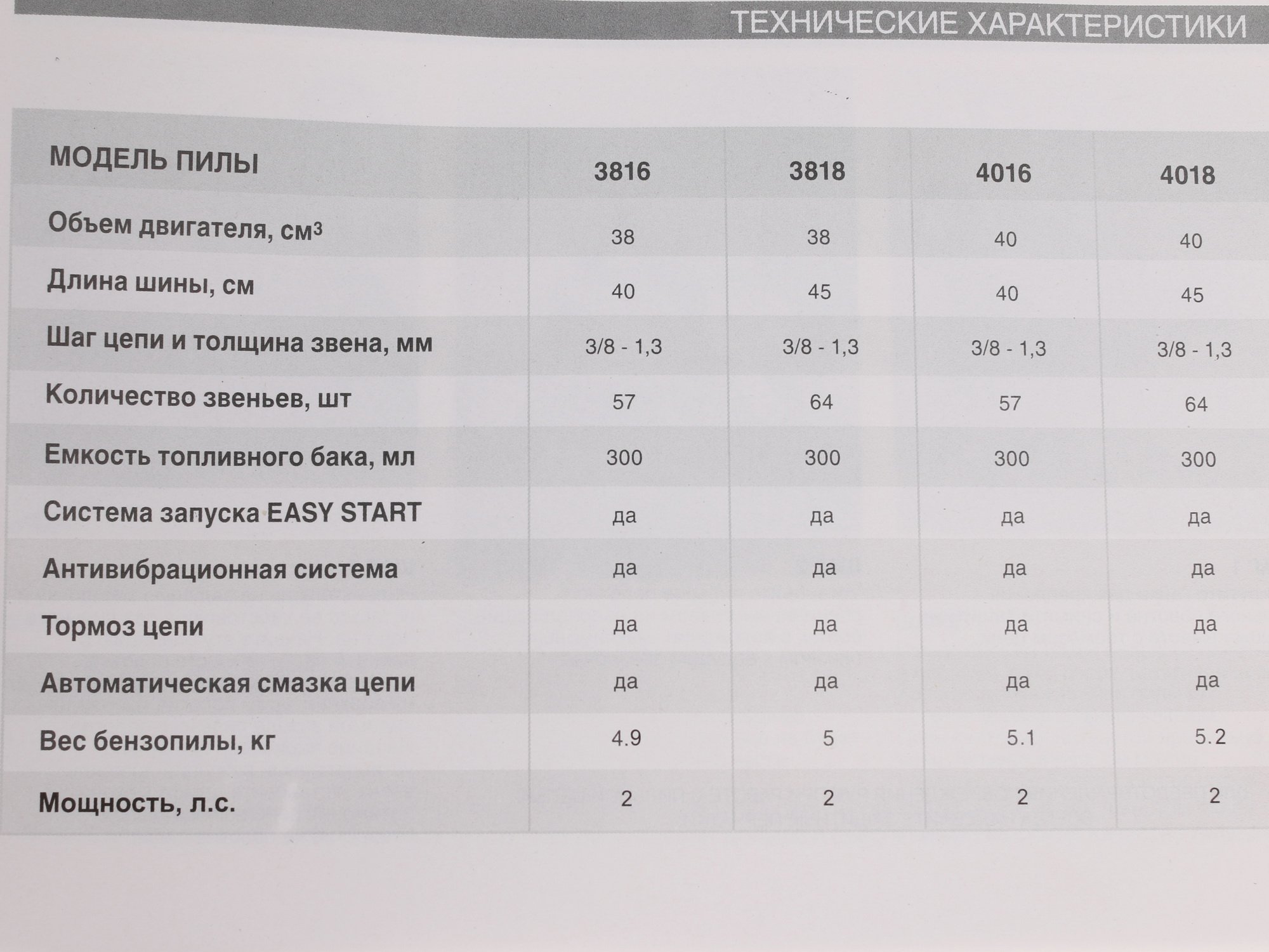 Бензопила PATRIOT PT3816 220105510 раб. объем 38сс, 2,0 л.с, шина 16", цепь 3/8" ; 0,050"/1,3мм ; 57 звеньев; облегченный запуск Easy Start;