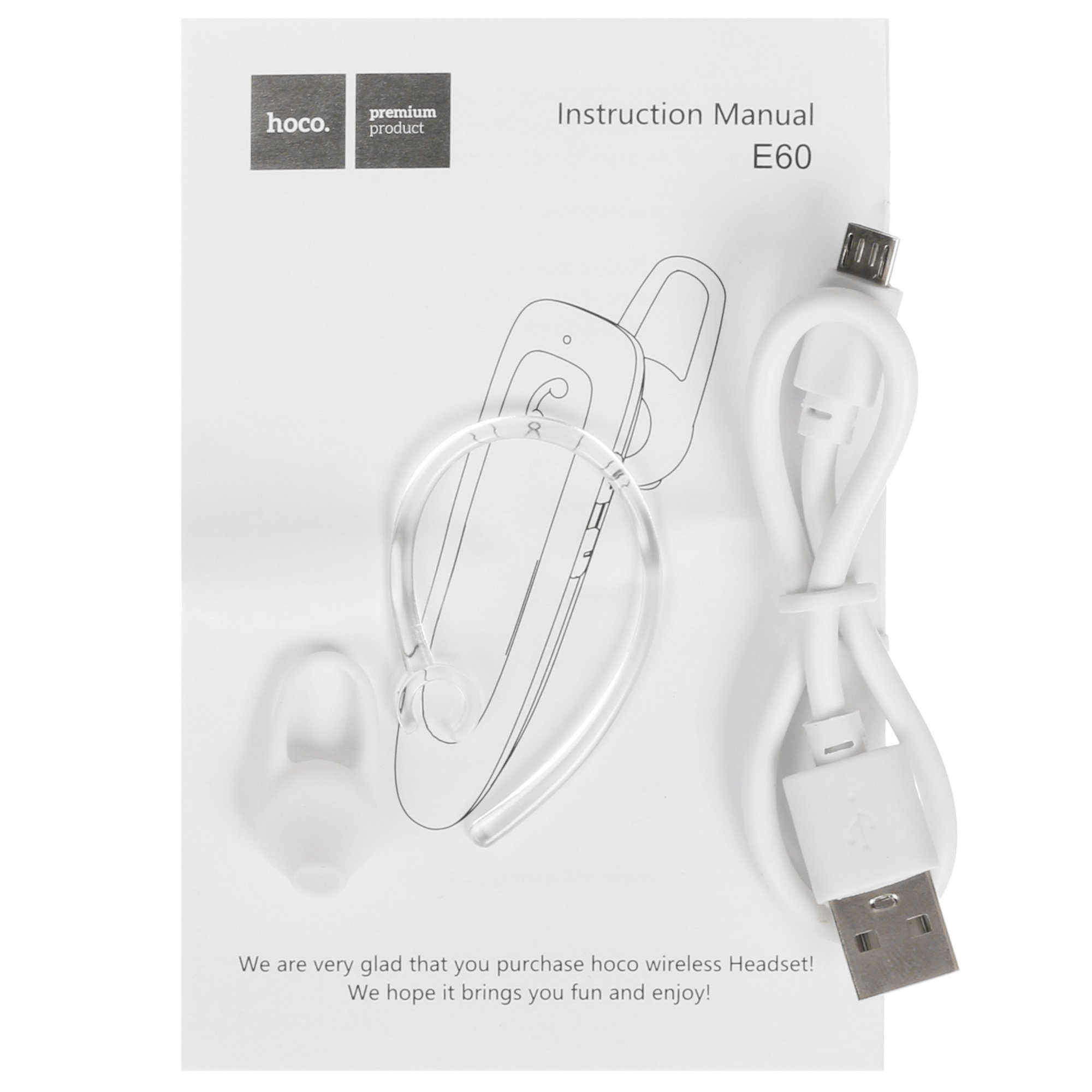 Bluetooth-моногарнитура HOCO E60 соответствует особенностям ушной раковины, что способствует надежной фиксации даже во время занятий физическими упражнениями. Расположенный в корпусе микрофон служит для совершения вызовов. Во время синхронизации используется интерфейс Bluetooth.