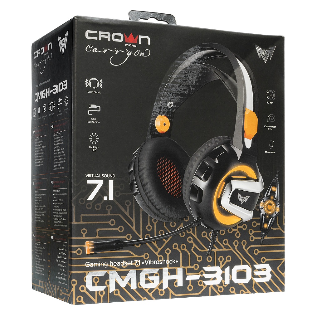 Crown CMGH-3103 - это проводная игровая компьютерная стерео гарнитура, которая обладает продуманным ярким дизайном и высоким качеством звука. Встроенная звуковая карта с программным обеспечением дает возможность индивидуально настроить подходящее звуковое оформление. Функция "Виброшок", срабатывающая при сильных НЧ звуках, значительно усиливает впечатления от динамичных моментов игры. Длинный гибкий кабель позволит расположить гарнитуру максимально комфортно без использования удлинителей.