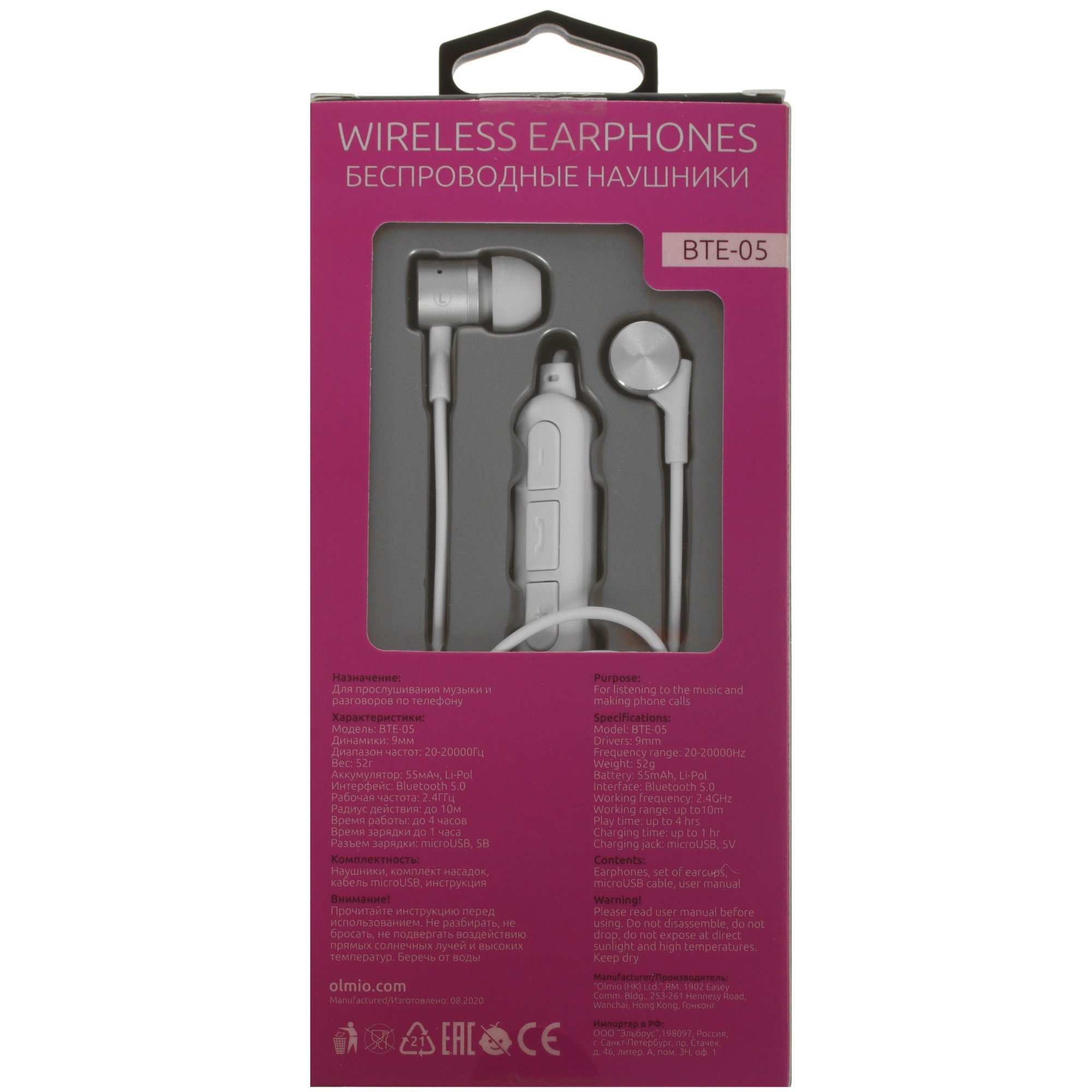 Беспроводные внутриканальные наушники OLMIO BTE-05, Bluetooth, белые