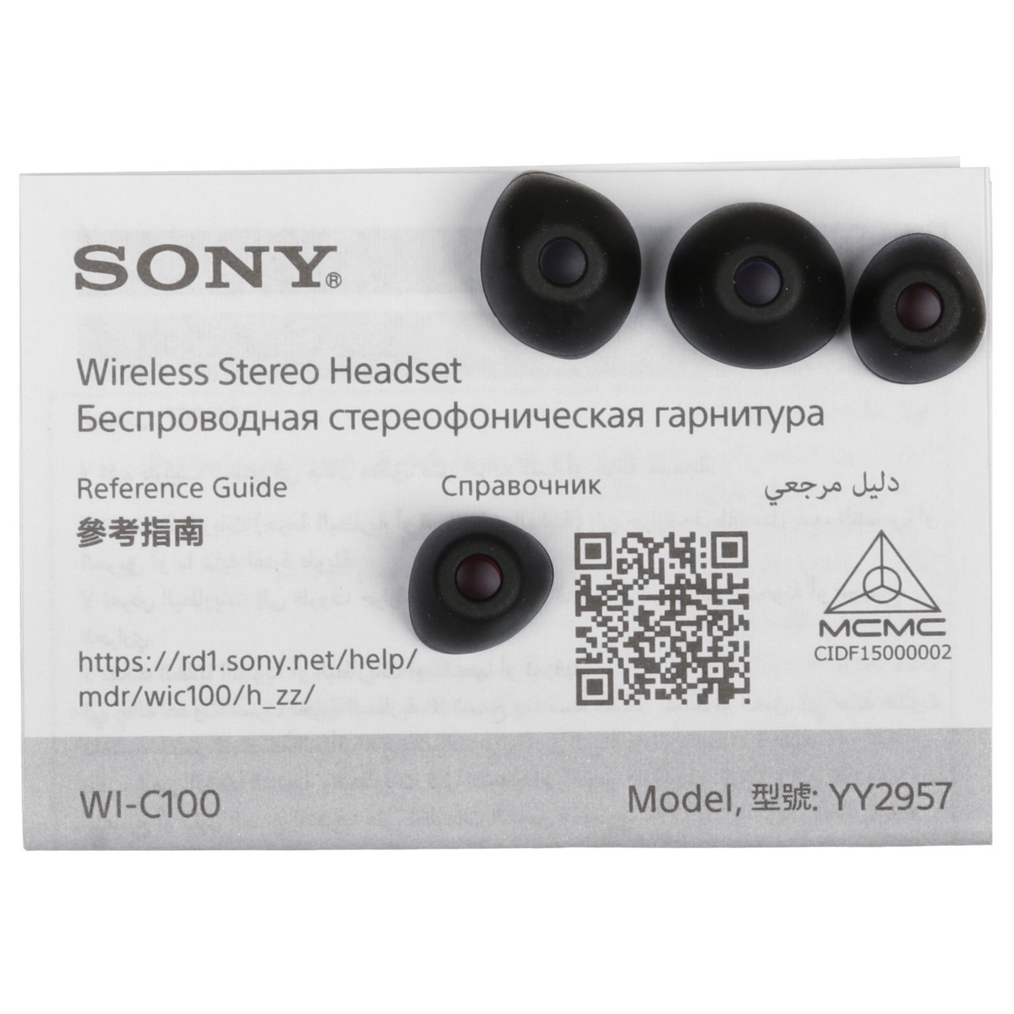 Гарнитура вкладыши Sony WI-C100 черный беспроводные bluetooth шейный обод