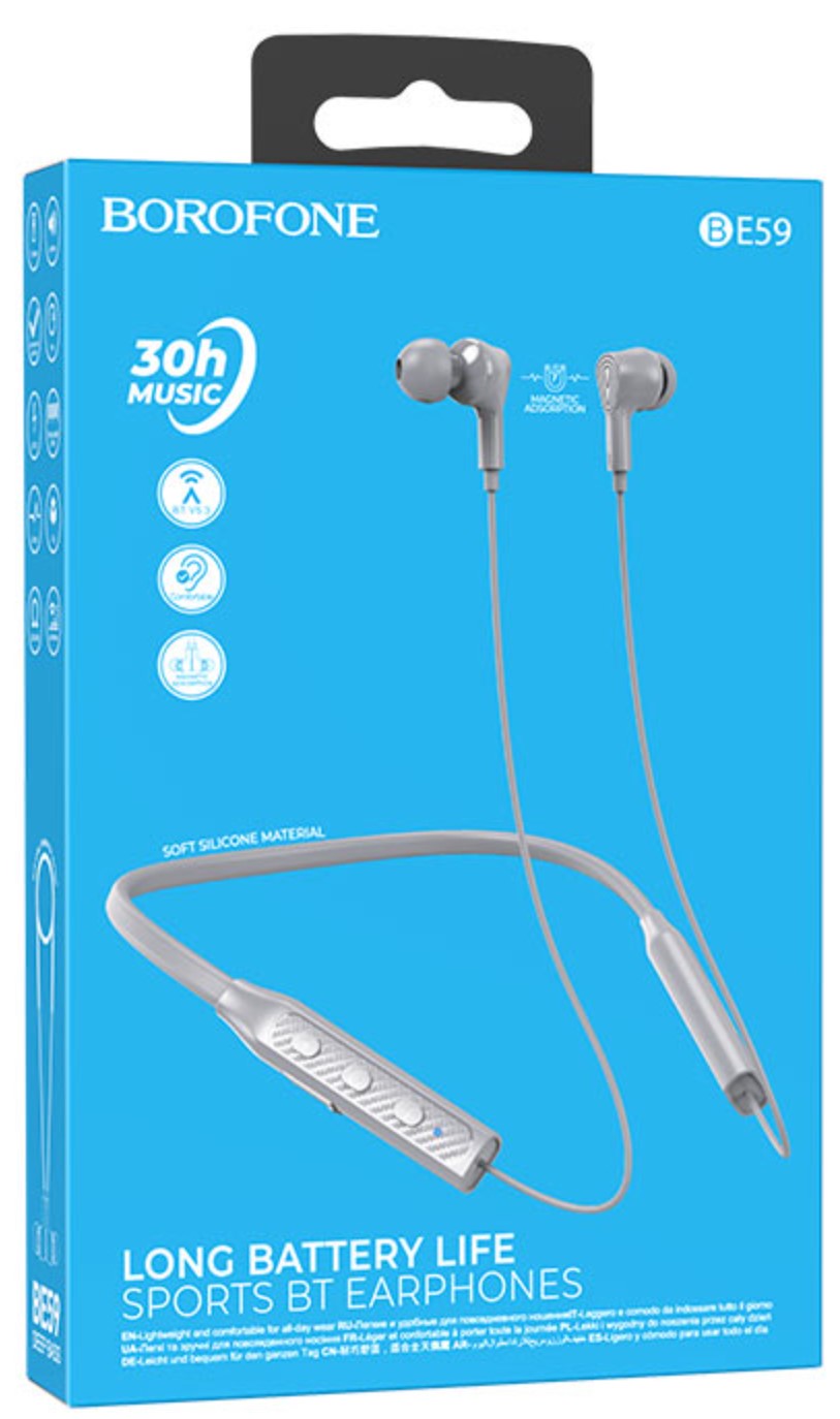 Borofone BE59 - беспроводные наушники с поддержкой BT v5.3, батарей 200mAh для 30 часов музыки или звонков и 200 часами в режиме ожидания.