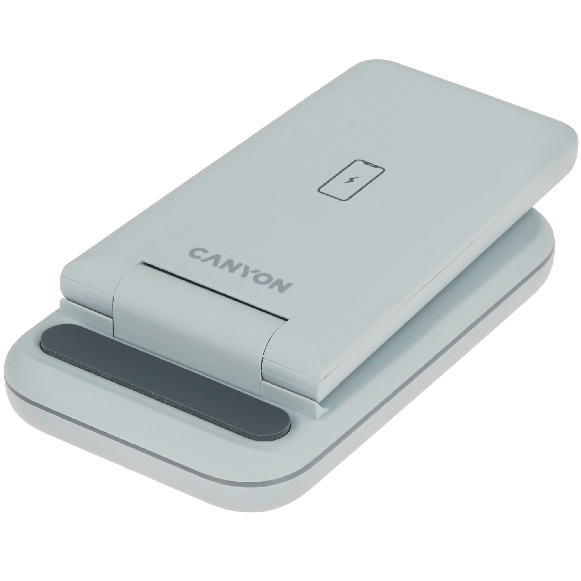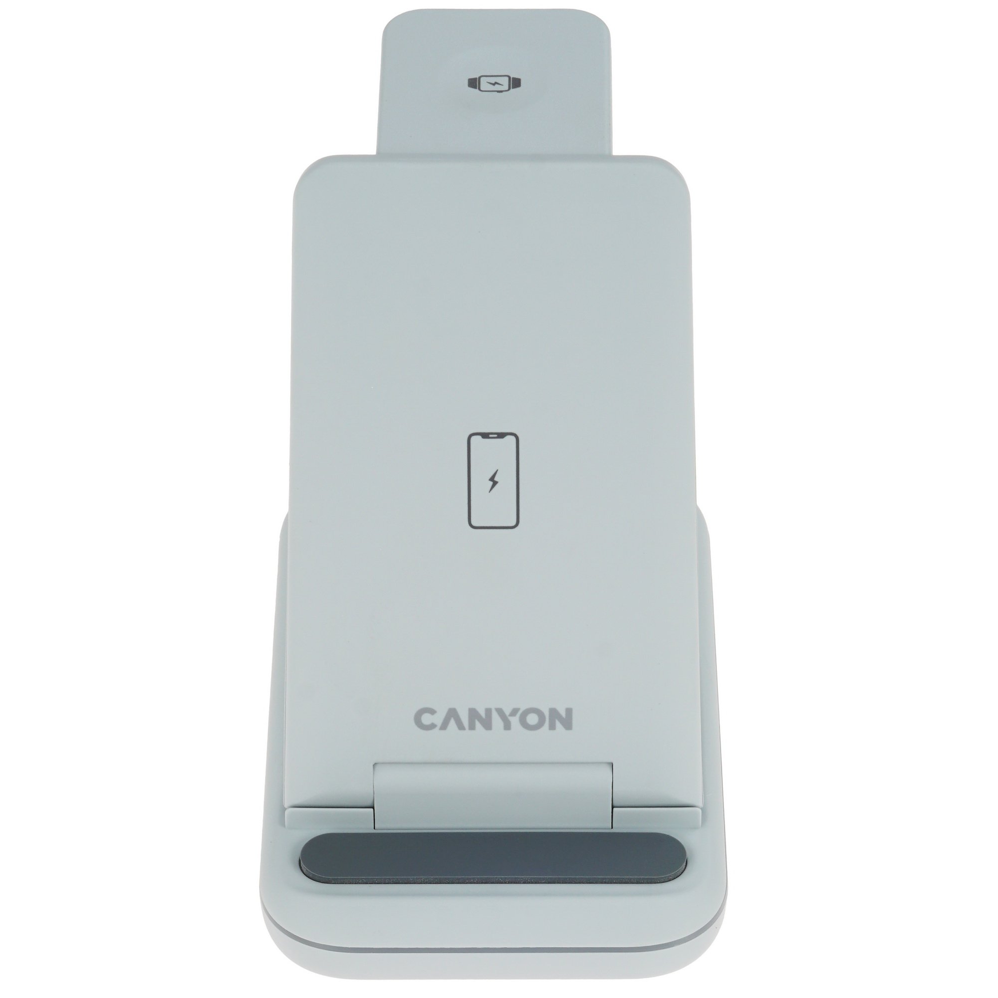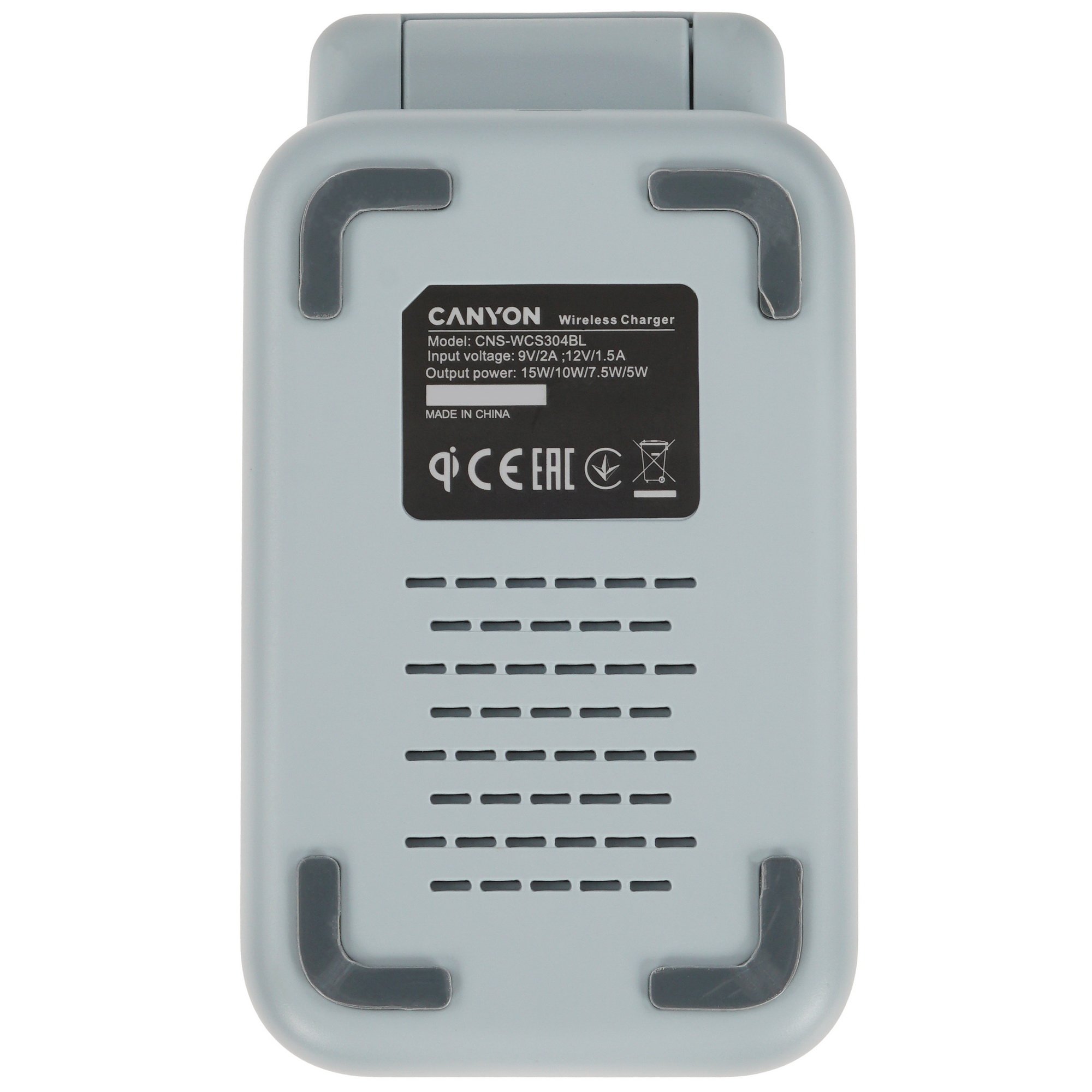 Беспроводное зарядное устройство CANYON WS-304, Foldable 3in1 Wireless charger, with touch button for Running water light, Input 9V/2A, 12V/1.5AOutput 15W/10W/7.5W/5W, Type c to USB-A cable length 1.2m, with QC18W EU plug,132.51*75*28.58мм, 0.168Kg,Blue