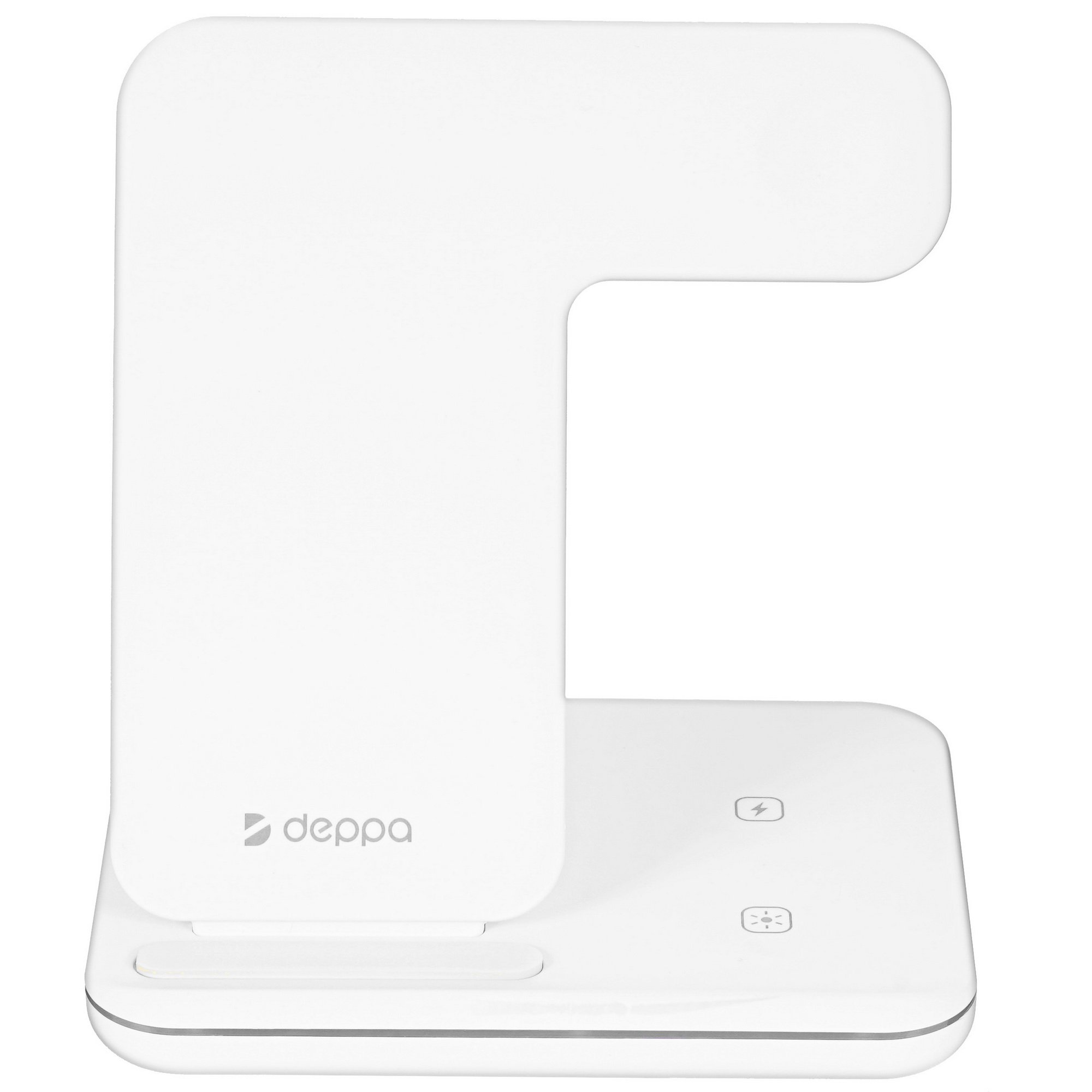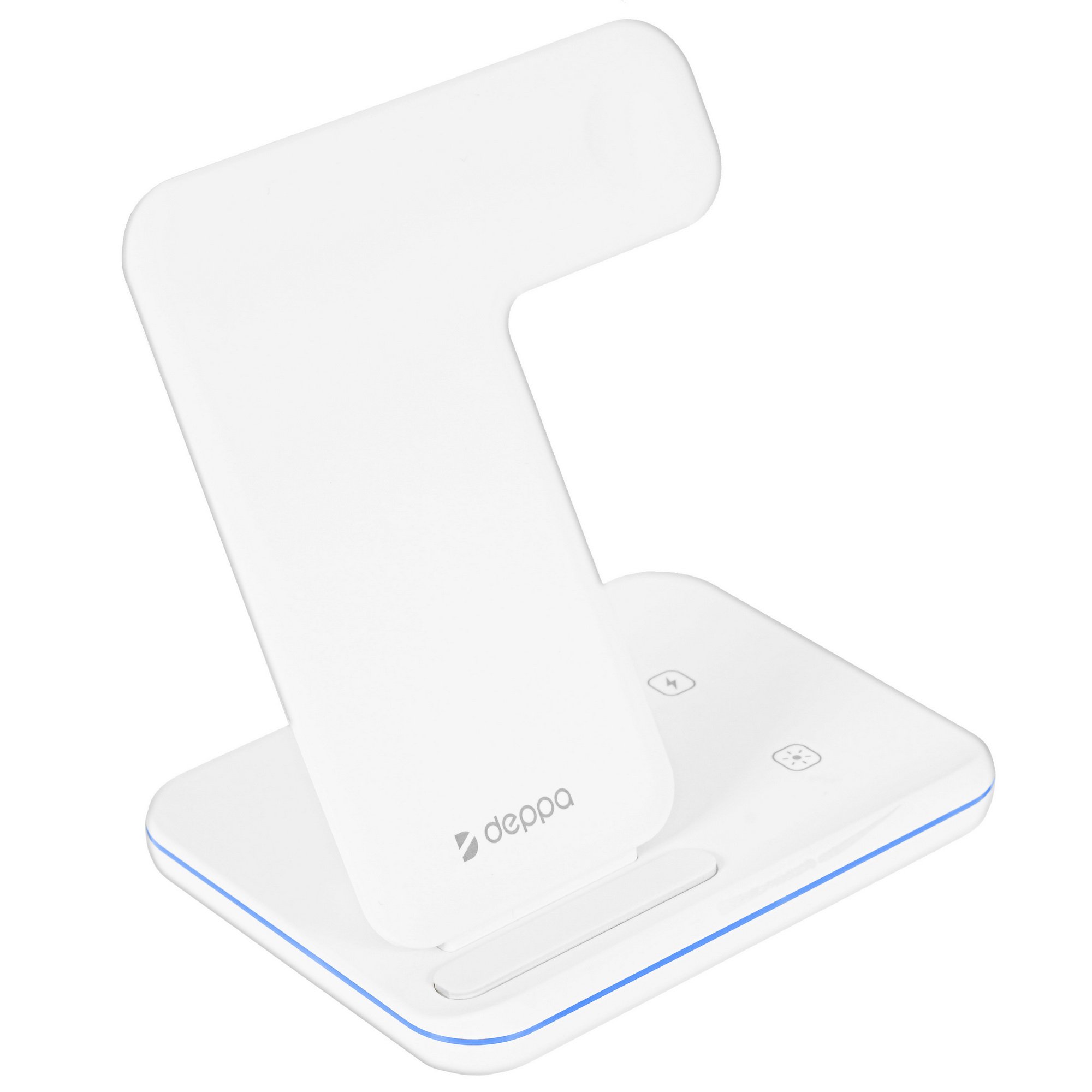 Беспроводное зарядное устройство DEPPA Charging Stand Neo 3-in-1 предоставляет возможность одновременной зарядки до 3-х устройств – смартфон iPhone, смарт-часы Apple Watch и наушники AirPods. Процесс зарядки активируется автоматически при размещении устройства в соответствующем месте на платформе. Интеллектуальная система защиты обеспечивает подачу сбалансированной мощности на каждое устройство и защищает от неблагоприятных воздействий. Стандарты Quick Charge и Power Delivery гарантируют ускоренный процесс восстановления заряда. Из других особенностей DEPPA Charging Stand Neo 3-in-1 отмечаются съемный кабель с интерфейсом USB Type-C, LED индикатор состояния и нескользящее Soft-touch покрытие.