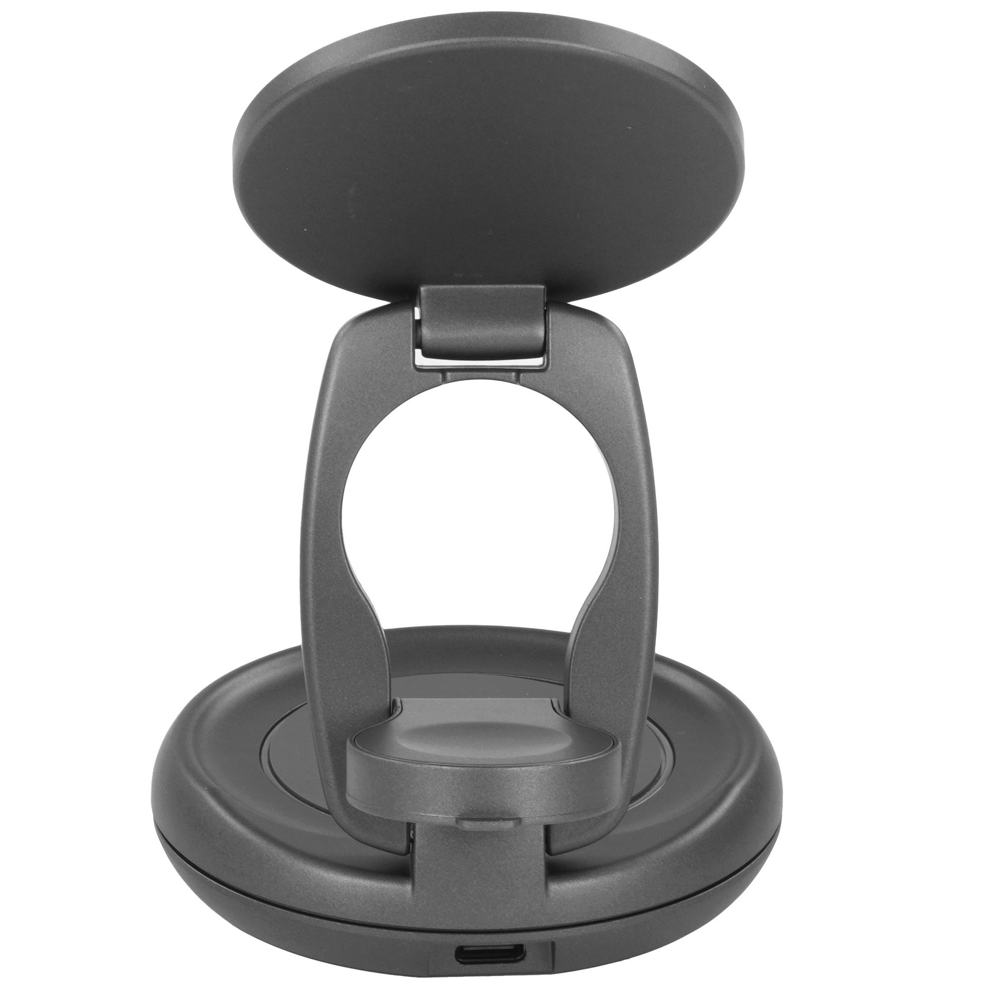Подставка позволяет вращаться на 360° и регулироваться вверх и вниз, обеспечивая оптимальный угол просмотра во время зарядки устройств.